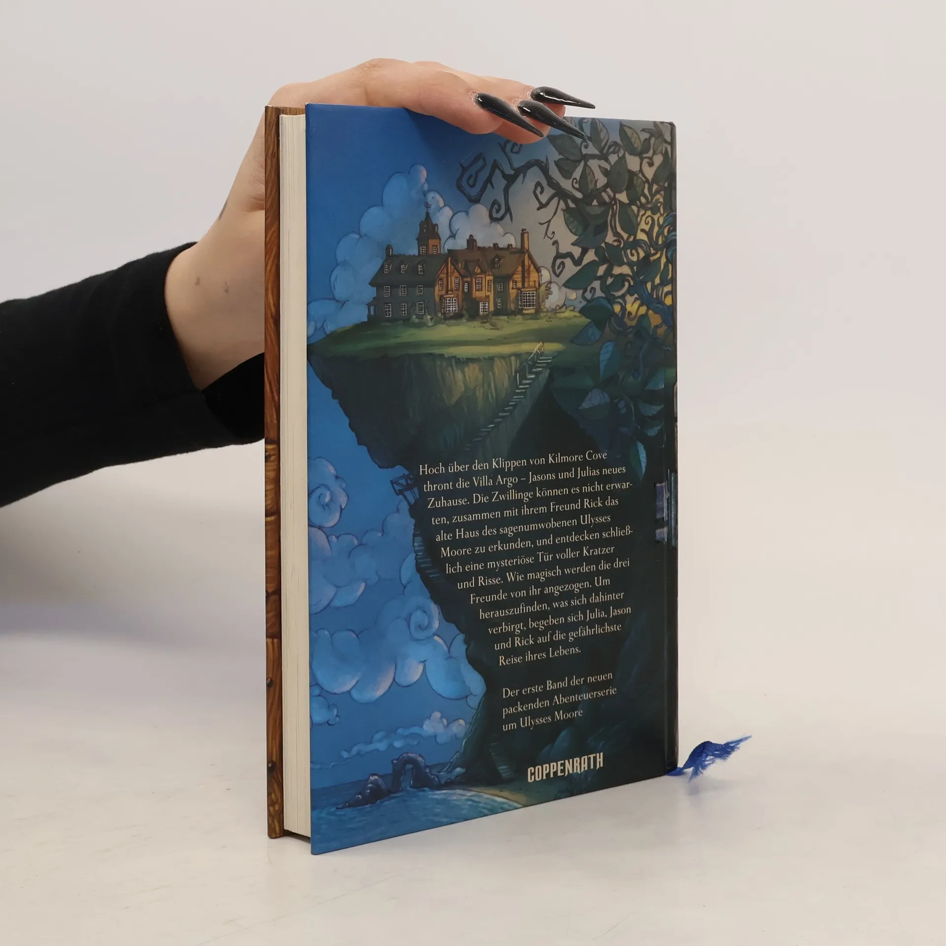 Ein Stapel verwitterter Hefte dokumentiert die unglaublich spannende Geschichte dreier junger Abenteurer. Von dem geheimnisvollen Autor weiß man nur eins mit Sicherheit, seinen Namen: Ulysses Moore. Hoch über den Klippen von Kilmore Cove thront die Villa Argo - Jason und Julias neues Zuhause. Die Zwillinge können es nicht erwarten, zusammen mit ihrem Freund Rick das alte Haus mit seinen rätselhaften Zimmern und verborgenen Gängen zu erkunden, und entdecken schließlich eine geheimnisvolle Tür. Wie magisch werden die drei Freunde von ihr angezogen. Um herauszufinden, was sich dahinter verbirgt, begeben sich Julia, Jason und Rick auf das größte und gefährlichste Abenteuer ihres Lebens.