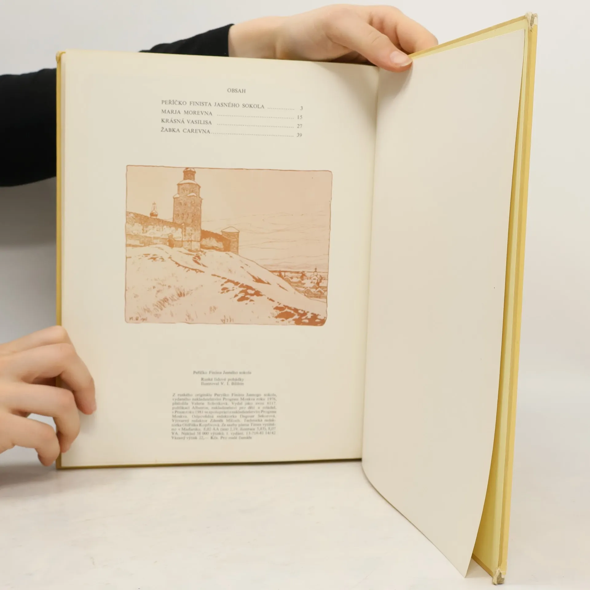 Soubor čtyř klasických ruských pohádek - Peříčko Finista Jasného sokola, Marja Morevna, Krásná Vasilisa, Žabka carevna - ve výpravném bohatě ilustrovaném vydání.