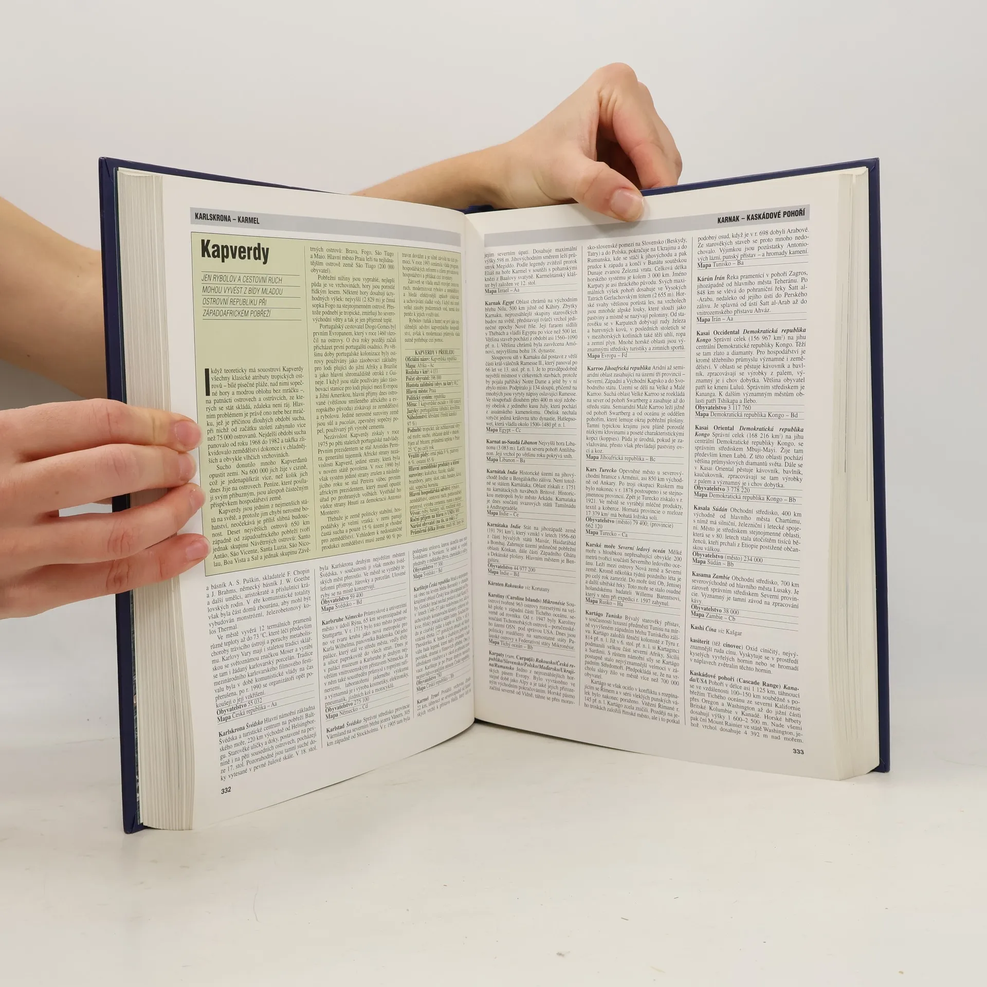 Dočtete se v ní o více než 6 500 pamětihodností naší planety, a to jak přírodních, tak vytvořených člověkem. Získáte správné povědomí o tom, kde leží místa, o kterých se hovoří v denních zprávách, kde se nacházejí oblasti, které přitahují mimořádný zájem turistů, kraje, které často postihují přírodní neštěstí, nebo významná naleziště přírodních zdrojů. Najdete zde například odpověď na otázky: Jak žijí lidé v různých částech světa a jaká je jejich kultura a tradice? Jaký mají ekonomický potenciál jednotlivé země a jejich hlavní města a jací jsou lidé, kteří v nich žijí? Která jsou nejméně probádaná místa na Zemi? Proč a jak vznikají orkány? Kde se nacházejí nejvyšší a nejširší vodopády? Jak vznikly neuvěřitelné památky z dob dávných civilizací? Knížka obsahuje 7 500 hesel, popis 193 zemí, více než 250 barevných vyobrazení a 174 barevných map.... celý text