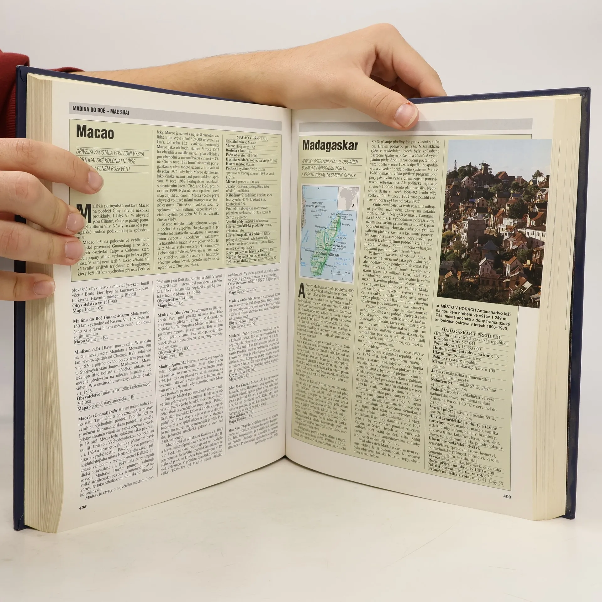 Dočtete se v ní o více než 6 500 pamětihodností naší planety, a to jak přírodních, tak vytvořených člověkem. Získáte správné povědomí o tom, kde leží místa, o kterých se hovoří v denních zprávách, kde se nacházejí oblasti, které přitahují mimořádný zájem turistů, kraje, které často postihují přírodní neštěstí, nebo významná naleziště přírodních zdrojů. Najdete zde například odpověď na otázky: Jak žijí lidé v různých částech světa a jaká je jejich kultura a tradice? Jaký mají ekonomický potenciál jednotlivé země a jejich hlavní města a jací jsou lidé, kteří v nich žijí? Která jsou nejméně probádaná místa na Zemi? Proč a jak vznikají orkány? Kde se nacházejí nejvyšší a nejširší vodopády? Jak vznikly neuvěřitelné památky z dob dávných civilizací? Knížka obsahuje 7 500 hesel, popis 193 zemí, více než 250 barevných vyobrazení a 174 barevných map.... celý text