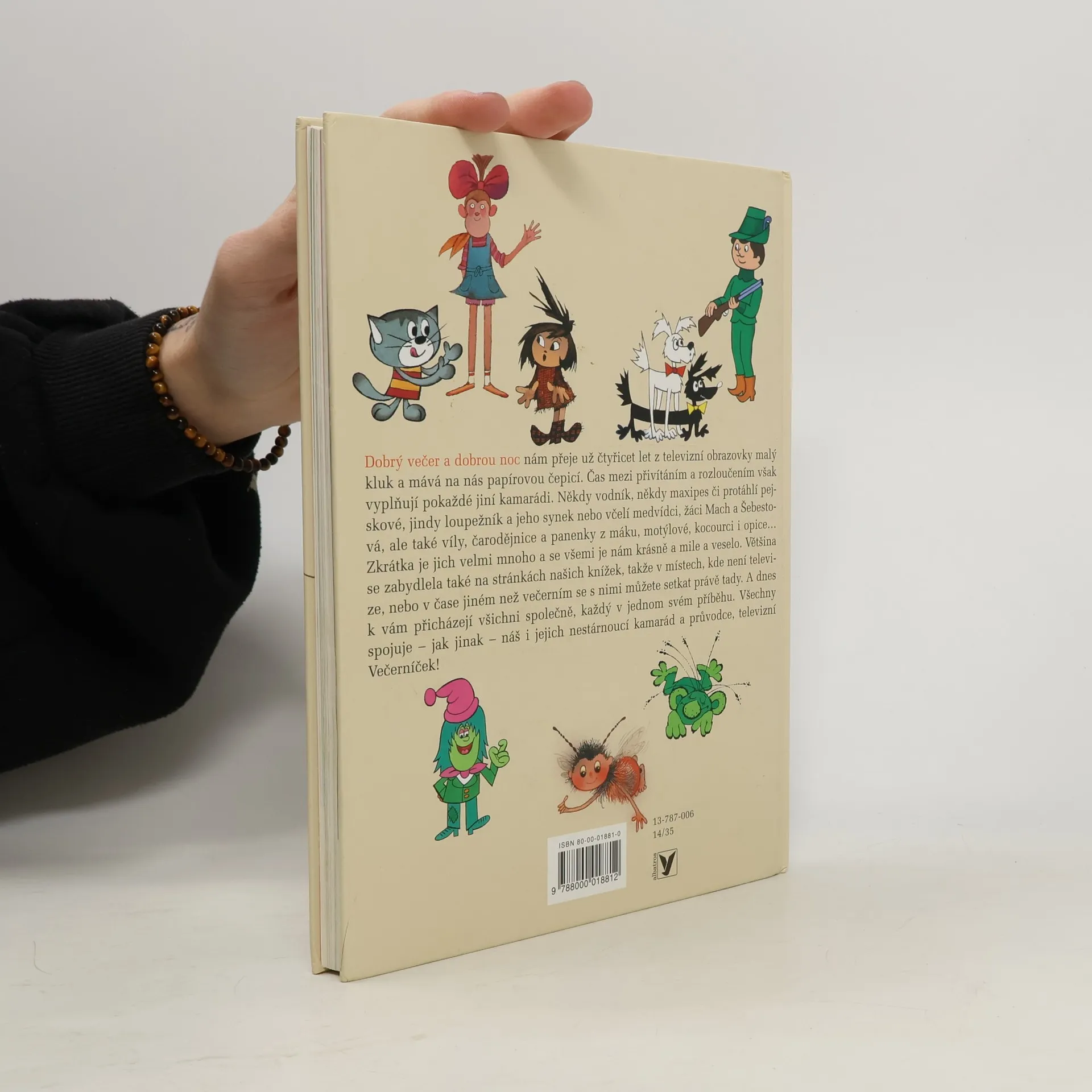 Nejoblíbenější televizní pořad pro děti Večerníček přednedávnem oslavil 40 let svého vzniku, a protože jeho příběhy mají u dětí velký úspěch i v knižní podobě, vydali jsme k výročí výbor těch nejhezčích pohádek. V pestré a bohatě ilustrované knížce je dvacet vyprávění s populárními postavičkami, jako jsou Rákosníček, Křemílek a Vochomůrka, Maková panenka, maxipes Fík, Mach a Šebestová, Bob a Bobek, víla Amálka, Štaflík a Špagetka, vodník Čepeček, celá Rumcajsova rodinka, malá čarodějnice, neposedná koťata a spousta dalších. Všichni jsou teď a tady pěkně dohromady, a to je právě prima – můžete se s nimi setkat, kdykoli se vám zachce.