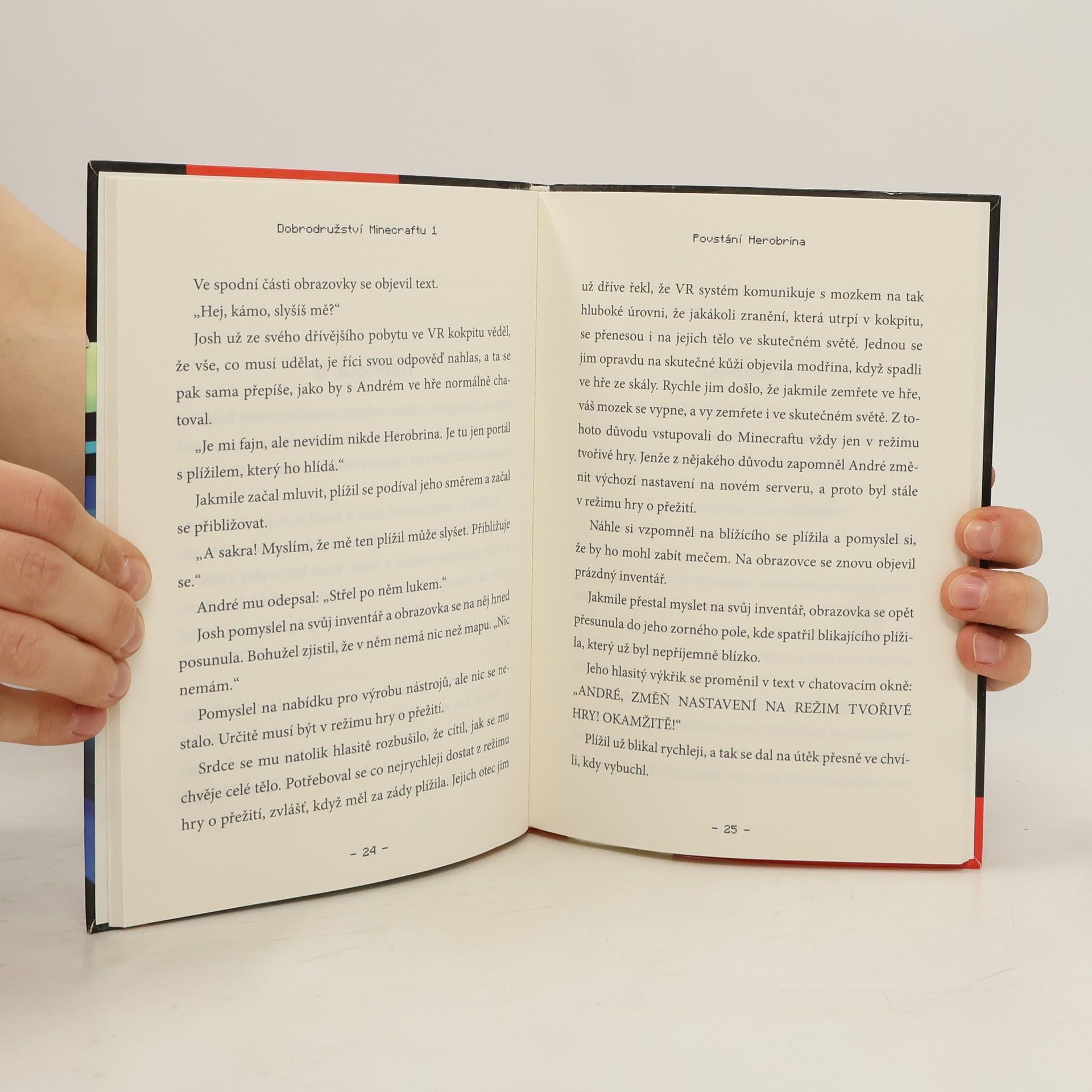 Většina hráčů Minecraftu už alespoň jednou slyšela zvěsti o tajemném Herobrinovi. Traduje se, že ho naprogramoval sám tvůrce Minecraftu Notch, ale byl pro hráče příliš nebezpečný, a tak byl ze hry odstraněn. Pravděpodobně je ale jen výplodem bujné hráčské fantazie. Bratři Josh a André, desetiletá dvojčata, používají vybavení z tátovy laboratoře virtuální reality ke hraní Minecraftu, jako by byli v kostičkovaném světě doopravdy. A protože se jedná o jediný prototyp, musejí se ve hře střídat. Díky přístupu k tátovu superpočítači ve vládní laboratoři se nabourali do zaheslovaného serveru, který vytvořil sám Notch. Šušká se, že obsahuje jedinou verzi Minecraftu, v jehož programu běží Herobrine. To, co tam našli, rozhodně nečekali. Roztočte svou fantazii na plné obrátky! Vzrušující dobrodružství ze světa Minecraftu chytne a nepustí každého milovníka napětí a počítačových her. Povstání Herobrina je krátký sci-fi román z dílny amerického spisovatele Steva DeWintera (píšícího pod pseudonymem S.D. Stuart), který své poutavé příběhy přenáší i do říše Minecraftu. Jedná se o první díl série Dobrodružství Minecraftu, která sleduje osudy dvojčat Joshe a Andrého na cestách po nejtemnějších zákoutích kostičkovaného světa.