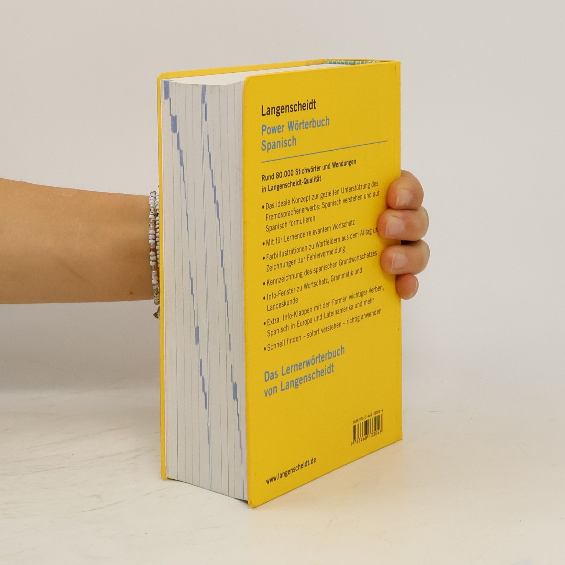 Gezielt zugeschnitten auf die beiden unterschiedlichen Aspekte des Fremdsprachenerwerbs: Spanisch verstehen und auf Spanisch formulieren. Zielgruppenspezifisch ausgewählte Stichwörter und Beispiele vermitteln genau das Spanisch, das die Lernenden wirklich brauchen. Kennzeichnung des spanischen Grundwortschatzes, internationale Lautschrift auch bei schwierig auszusprechenden spanischen Übersetzungen. Hunderte von Info-Fenstern zu Wortschatz, Grammatik und Landeskunde sowie ganzseitige Farbillustrationen für die effektive Wortschatzarbeit.