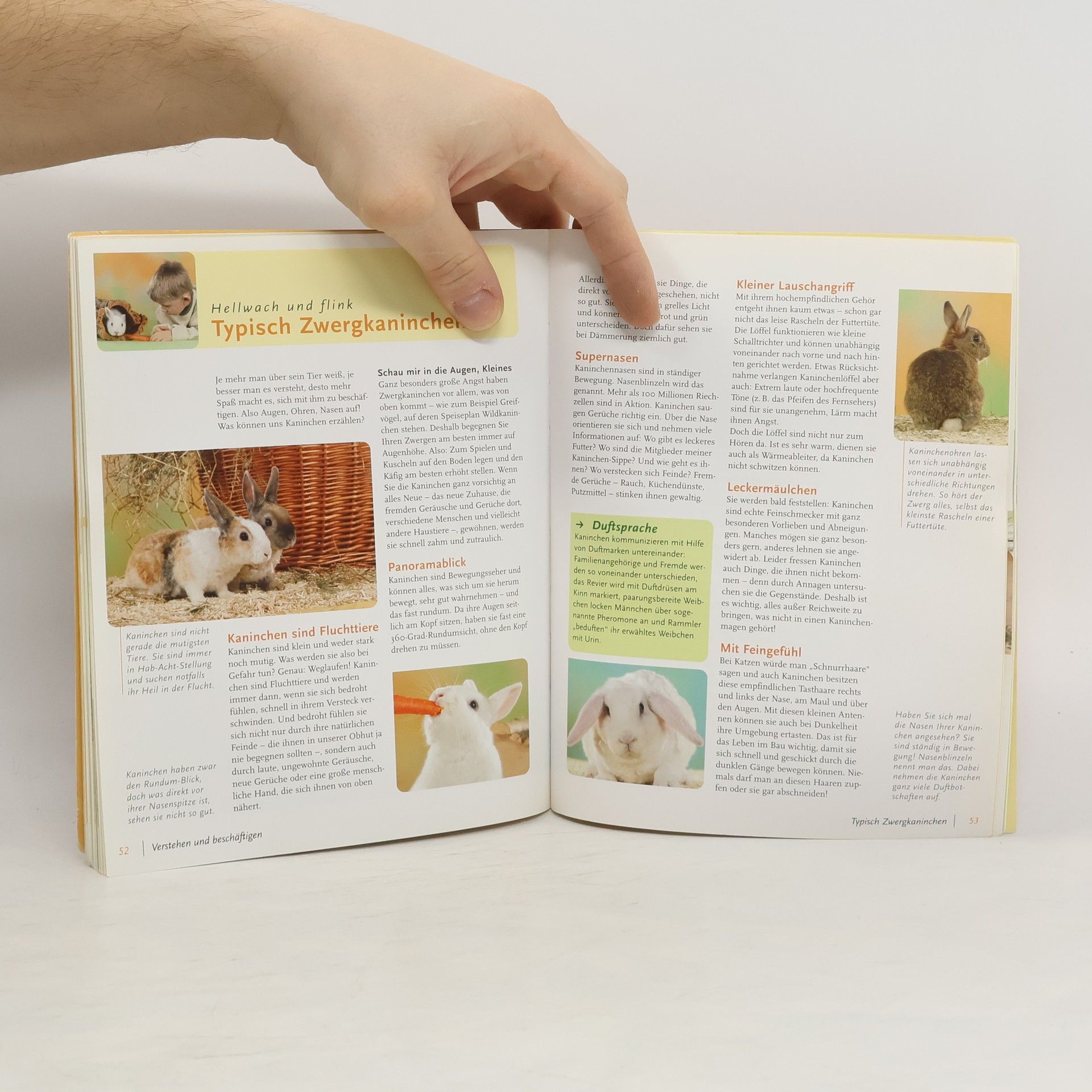 Neugierig, kuschelig und unglaublich süß. Hüpfen, hoppeln, Haken schlagen: Zwergkaninchen erobern mit ihrem niedlichen Aussehen und ihrem freundlichen Wesen die Herzen der Kinder im Nu – aber auch die vieler Erwachsener. Hier erfahren Sie, wie Sie die passenden Zwerge auswählen und das Gehege kaninchengerecht einrichten, wie Sie die Kaninchen richtig füttern und versorgen, alles über Kaninchensprache und Beschäftigung der Mümmelmänner. Extra: Mit Zwergkaninchen-Dolmetscher und einer Schnelldiagnosetafel mit den häufigsten Krankheitssymptomen. Für Kids: Snackideen für Kaninchen-Partys und Kaninchenzirkus „Manege frei“. Mein Pflegeplan: Fütterung und Pflege auf einen Blick.