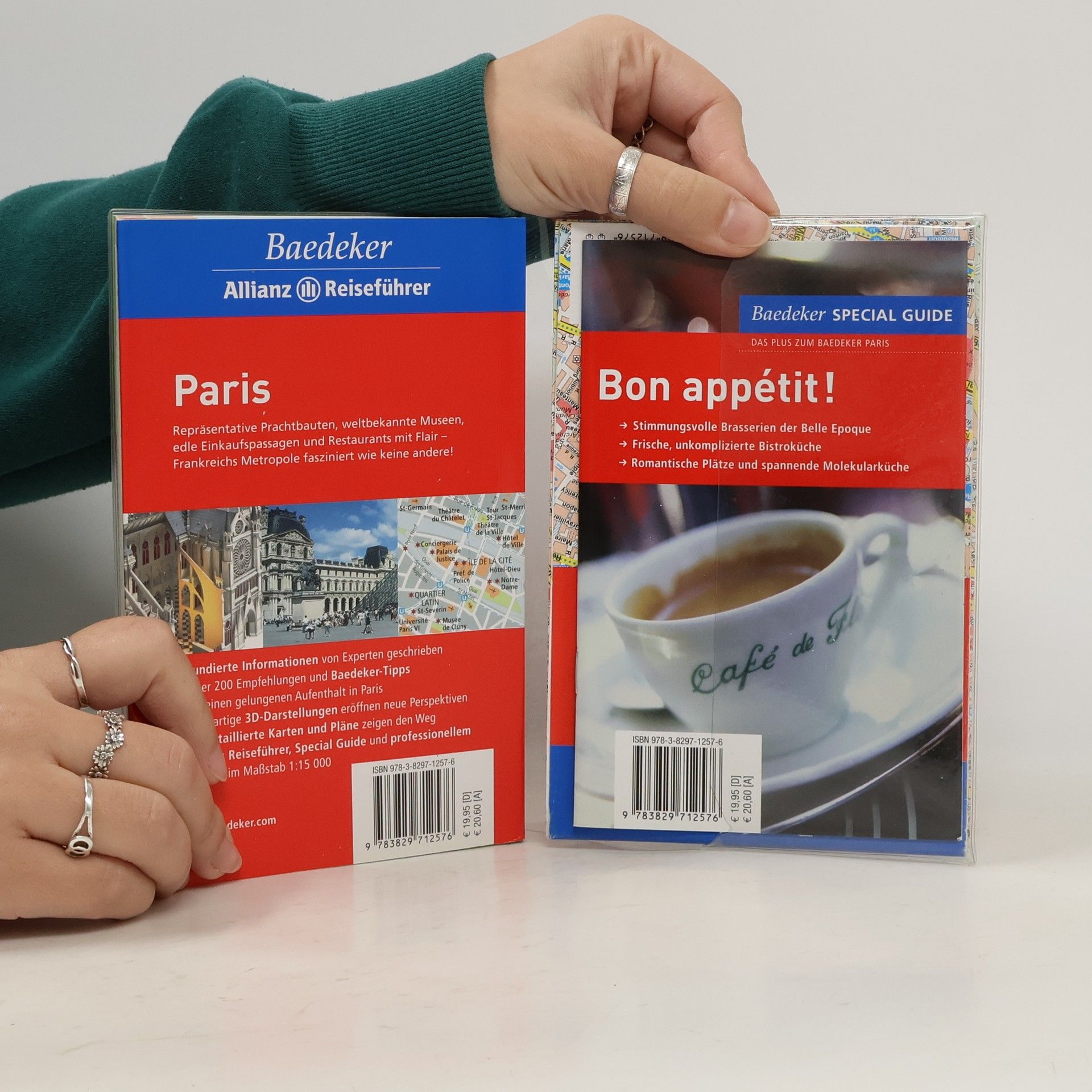 Set aus: Baedeker Reiseführer Paris mit themenorientiertem Special Guide und professionellem Cityplan. Ausführliche und fundierte Informationen zu Geschichte, Kultur, Politik und Wirtschaft; Tourenvorschläge, Sehenswertes und Praktische Informationen von A bis Z sowie Register. Einfache und schnelle Orientierung durch Farbleitsystem, Empfehlungen und Tipps der Baedeker-Redaktion. Umfangreiches Kartenmaterial sowie 3D-Darstellungen. Die Schöne an der Seine Paris fasziniert wie keine andere Stadt: Die prachtvolle Seinemetropole, die Stadt der Verliebten, der Belle Epoque und Grands Boulevards bestimmt über Politik und Zeitgeist. Der Baedeker Paris führt zu repräsentativen Bauten, weltbekannten Museen, edlen Einkaufspassagen und Restaurants mit Flair, kurzum: Durch ein Fest fürs Leben. Paris ist das Herz Frankreichs. Hauptstadt und Wirtschaftszentrum, multikulturelle Metropole, Kapitale der Superlative, der wahren Lebenskunst und Poesie. Wissenswertes über Wirtschaft, Geschichte, Kunst und Kultur sowie Bewohner der Weltstadt erfährt man im Kapitel Hintergrund. Wie und wann Paris sein mondänes Gesicht erhielt, erfährt man in einem Themen-Special. Was darf man auf keinen Fall zu Hause vergessen? Wo geht man in Paris am Abend besonders gut essen und wohin zum Shopping? Praktische Informationen helfen in jeder Lebenslage von Anreise bis Zeit, wissen, wo es die besten und günstigsten Übernachtungs- und Einkaufsmöglichkeiten gibt, wie und wo man Urlaub aktiv gestalten kann und geben Tipps, wenn man z. B. mit Kindern in Paris unterwegs ist. Ein knapper Sprachführer erleichtert die Verständigung. Specials widmen sich heißen Rhythmen, Visionen aus Glas und Eisen, dem Inbegriff von Eleganz und dem französischen Chanson. Eine Tour mit dem Touristenbus zeigt ohne Frage das Wichtigste von Paris. Spannender ist es aber die Stadt an der Seine zu Fuß zu entdecken: Zwei Stadtspaziergänge führen vom antiken Lutetia zur pulsierenden Weltstadt und am Rive Gauche entlang zu studentischem Trubel, verträumten Winkeln und charmanten Cafés. Der weltberühmte Louvre, Notre-Dame, Champs-Elysée und Eiffelturm, Napoleons Arc de Triomphe und der bezaubernde Place des Vosges - wer nicht wochenlang in Paris ist, hat die Qual der Wahl. Was man auf keinen Fall versäumen darf, ist als Top-Sehenswertes zusammengestellt. Alle Sehenswürdigkeiten der Stadt sind von A – Z ausführlich beschrieben. Specials beschäftigen sich mit außergewöhnlichen Persönlichkeiten, typischen Phänomenen der Stadt und mit dem eigentlichen Phänomen Paris an sich. Wie viele Nieten halten den Eiffelturm zusammen? Wie heißt das meistverkaufte Parfüm der Welt und wo hatte die Réstistance 1944 ihr Hauptquartier? Der Baedeker Paris schaut gerne hinter die Kulissen und wartet mit interessanten und überraschenden Fakten auf. Die Baedeker-Tipps verraten, wie man Paris ganz authentisch und kostenlos entdecken, das beste Eis der Stadt schlecken kann und wo die Geheimnisse der Parfümherstellung gelüftet werden. Einzigartige 3D-Darstellungen geben lebendige Einblicke in die Kathedrale Notre-Dame, das Panthéon und das Schloss in Versailles. Der Special Guide „Bon appétit!“ hat Tipps und Adressen für Gourmets und Genießer und führt zu stimmungsvollen Brasserien, unkomplizierten Bistros und romantischen Plätzen. Der Baedeker Paris führt sicher durch die Stadt und bietet fundierte Hintergründe. Großartige 3D-Darstellungen eröffnen neue Perspektiven. Der professionelle City-Plan im Maßstab 1:15.000 und die praktische Umschlagkarte mit Cityplan geben überall Orientierung.