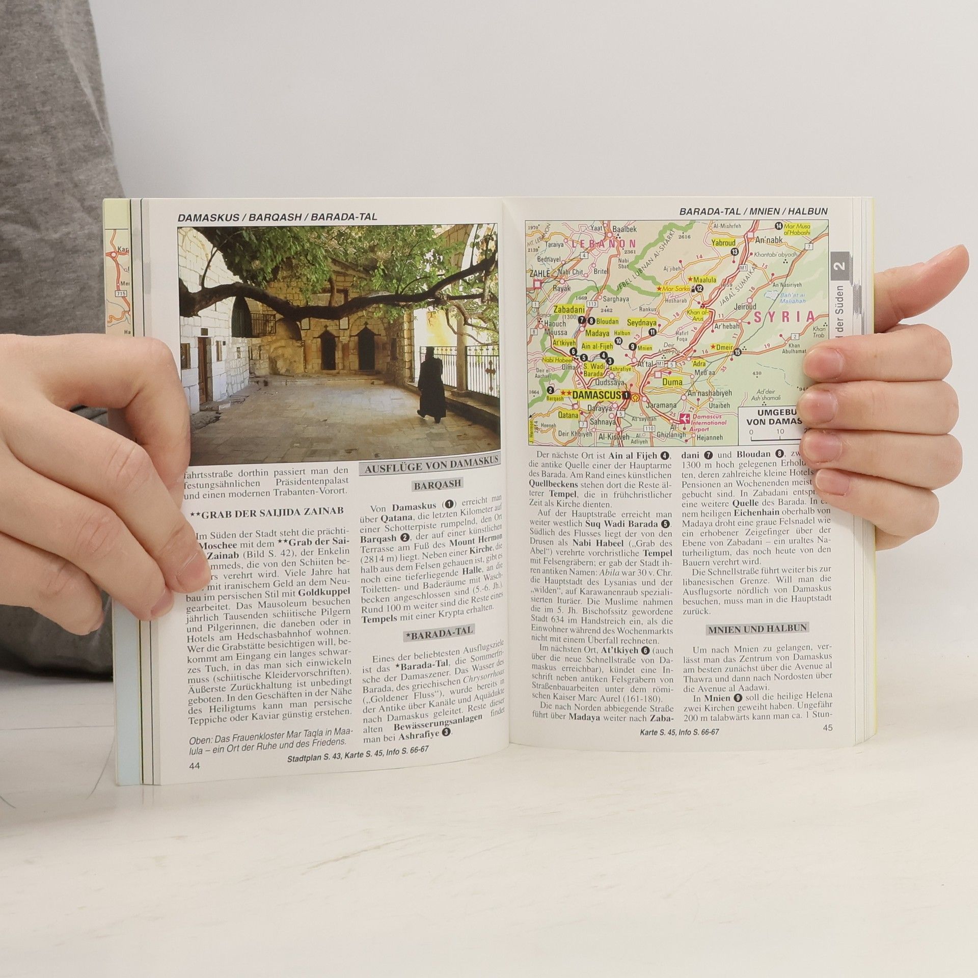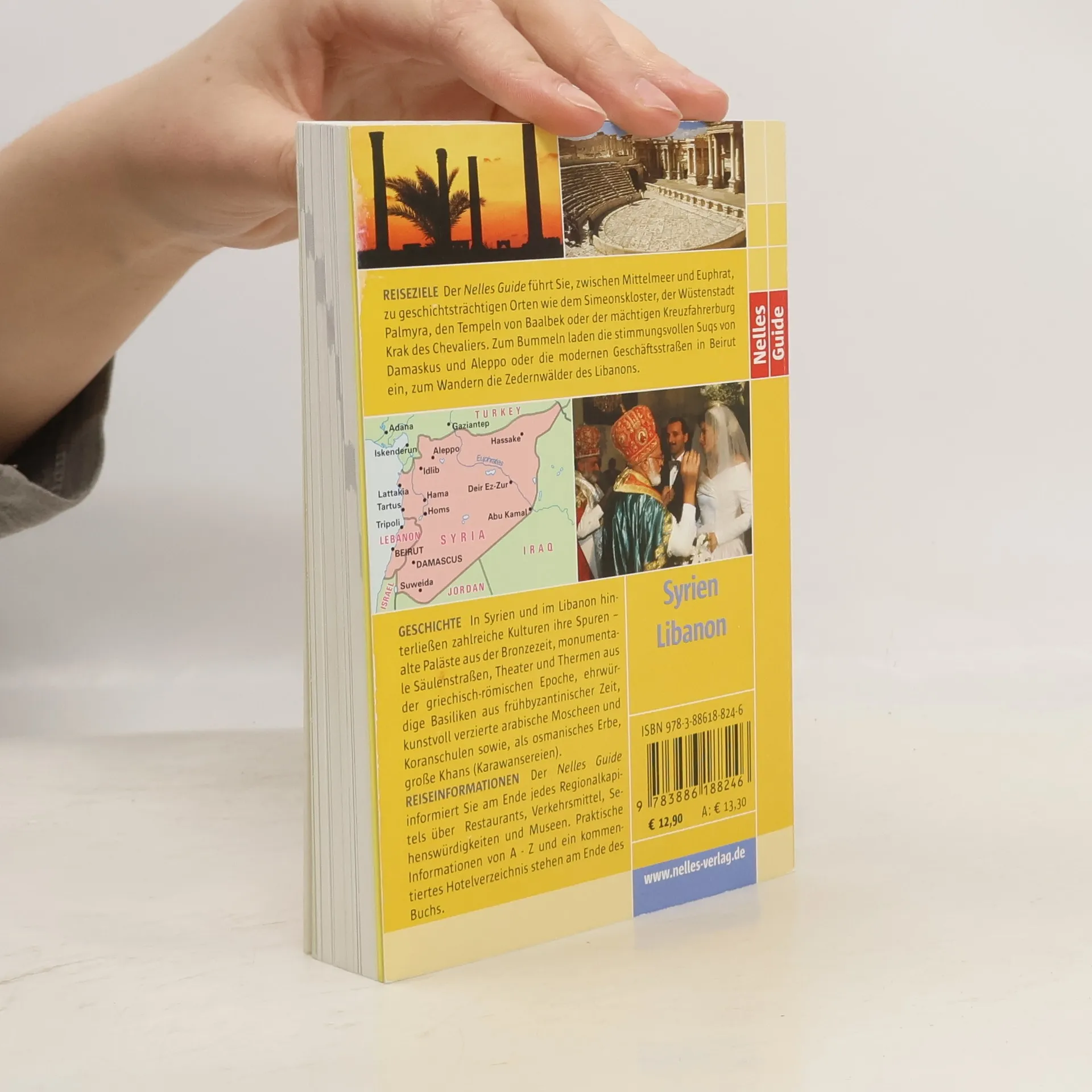 REISEZIELE: Der Nelles Guide führt Sie, zwischen Mittelmeer und Euphrat, zu geschichtsträchtigen Orten wie dem Simeonskloster, der Wüstenstadt Palmyra, den Tempeln von Baalbek oder der mächtigen Kreuzfahrerburg Krak des Chevaliers. Zum Bummeln laden die stimmungsvollen Suqs von Damaskus und Aleppo oder die modernen Geschäftsstraßen in Beirut ein, zum Wandern die Zedernwälder des Libanons. GESCHICHTE: In Syrien und im Libanon hinterließen zahlreiche Kulturen ihre Spuren – alte Paläste aus der Bronzezeit, monumentale Säulenstraßen, Theater und Thermen aus der griechisch-römischen Epoche, ehrwürdige Basiliken aus frühbyzantinischer Zeit, kunstvoll verzierte arabische Moscheen und Koranschulen sowie, als osmanisches Erbe, große Khans (Karawansereien). REISEINFORMATIONEN: Der Nelles Guide informiert Sie am Ende jedes Regionalkapitels über Restaurants, Verkehrsmittel, Sehenswürdigkeiten und Museen. Praktische Informationen von A - Z und ein kommentiertes Hotelverzeichnis stehen am Ende des Buchs.