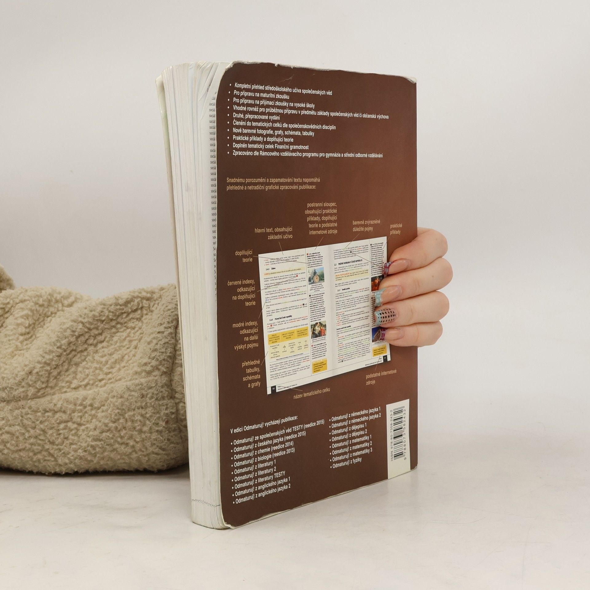 Nakladatelství DIDAKTIS připravuje nové vydání úspěšného titulu Odmaturuj! ze společenských věd z edice Odmaturuj! Edice Odmaturuj! je primárně určena na přípravu k maturitní zkoušce, a to především k maturitní zkoušce v části profilové, taktéž slouží k přípravě na přijímací zkoušky na vysoké školy s humanitním zaměřením. Titul Odmaturuj! ze společenských věd však v novém vydání doporučujeme také pro průběžnou přípravu v předmětu základy společenských věd či občanská výchova na středních školách. I když tituly z edice Odmaturuj! nejsou koncipovány jako učebnice, je do nich zařazeno z hlediska obsahové komplexnosti veškeré středoškolské učivo. Titul je zpracován dle RVP pro gymnázia a RVP pro střední odborné vzdělávání. Nové vydání bude aktualizované podle legislativy účinné k 1. 1. 2015, bude doplněno o nové teoretické poznatky v rámci jednotlivých vědních disciplín a o praktické příklady. Obsah knihy je členěn do následujících tematických celků: Politologie Právo Mezinárodní vztahy Ekonomie Sociologie Psychologie Filozofie Etika Logika a teorie vědy Religionistika Finanční gramotnost Po grafické stránce je důležitou změnou převedení titulu do barevného provedení na bílém podkladu, výklad je doplněn řadou schémat, tabulek a grafů. Nově byl přidán také odkazový aparát v rámci textu a odkazy na podstatné internetové zdroje.