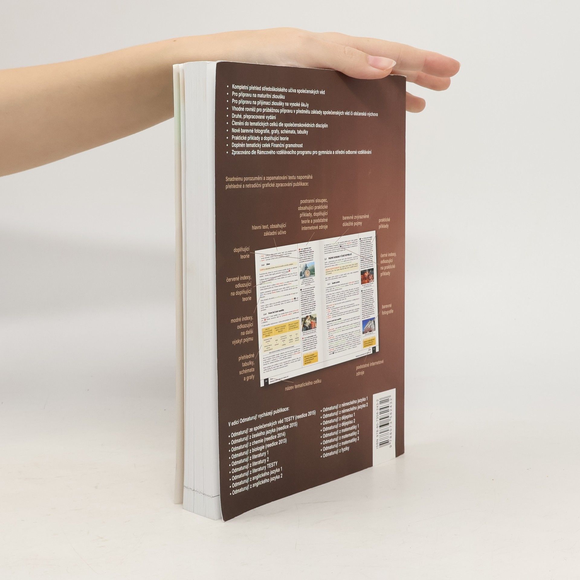 Nakladatelství DIDAKTIS připravuje nové vydání úspěšného titulu Odmaturuj! ze společenských věd z edice Odmaturuj! Edice Odmaturuj! je primárně určena na přípravu k maturitní zkoušce, a to především k maturitní zkoušce v části profilové, taktéž slouží k přípravě na přijímací zkoušky na vysoké školy s humanitním zaměřením. Titul Odmaturuj! ze společenských věd však v novém vydání doporučujeme také pro průběžnou přípravu v předmětu základy společenských věd či občanská výchova na středních školách. I když tituly z edice Odmaturuj! nejsou koncipovány jako učebnice, je do nich zařazeno z hlediska obsahové komplexnosti veškeré středoškolské učivo. Titul je zpracován dle RVP pro gymnázia a RVP pro střední odborné vzdělávání. Nové vydání bude aktualizované podle legislativy účinné k 1. 1. 2015, bude doplněno o nové teoretické poznatky v rámci jednotlivých vědních disciplín a o praktické příklady. Obsah knihy je členěn do následujících tematických celků: Politologie Právo Mezinárodní vztahy Ekonomie Sociologie Psychologie Filozofie Etika Logika a teorie vědy Religionistika Finanční gramotnost Po grafické stránce je důležitou změnou převedení titulu do barevného provedení na bílém podkladu, výklad je doplněn řadou schémat, tabulek a grafů. Nově byl přidán také odkazový aparát v rámci textu a odkazy na podstatné internetové zdroje.