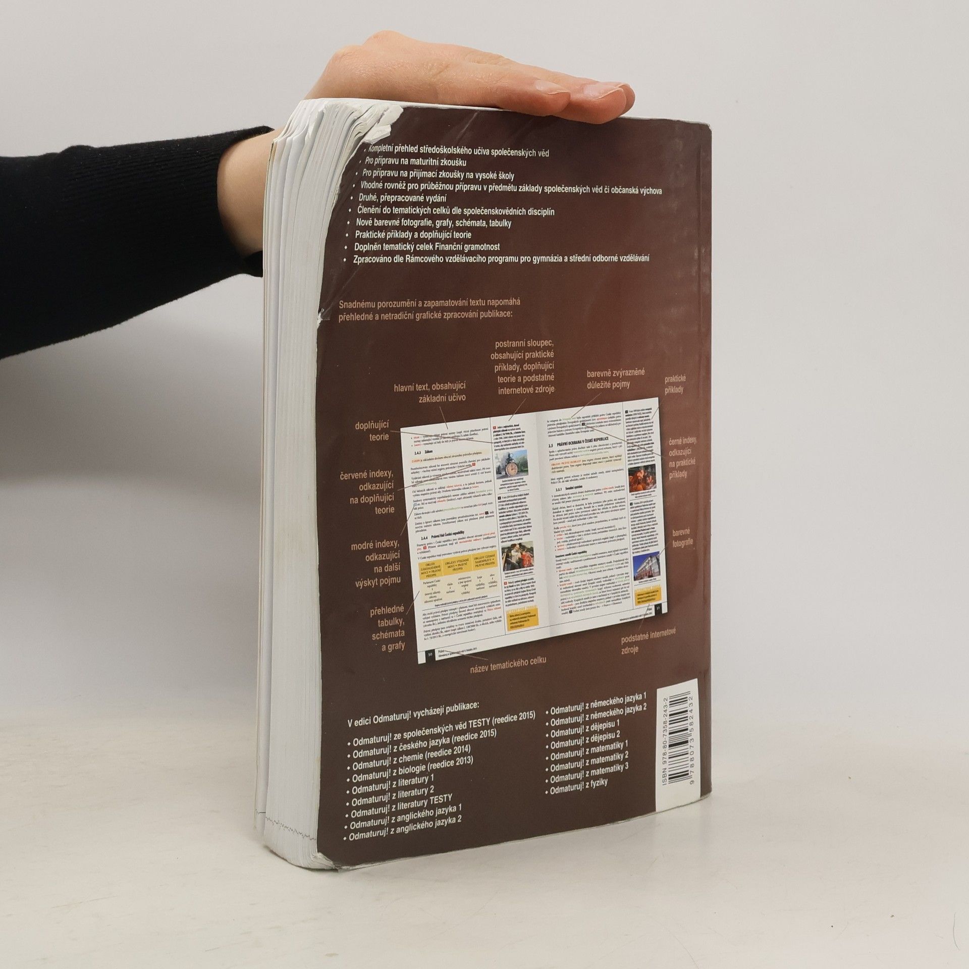 Nakladatelství DIDAKTIS připravuje nové vydání úspěšného titulu Odmaturuj! ze společenských věd z edice Odmaturuj! Edice Odmaturuj! je primárně určena na přípravu k maturitní zkoušce, a to především k maturitní zkoušce v části profilové, taktéž slouží k přípravě na přijímací zkoušky na vysoké školy s humanitním zaměřením. Titul Odmaturuj! ze společenských věd však v novém vydání doporučujeme také pro průběžnou přípravu v předmětu základy společenských věd či občanská výchova na středních školách. I když tituly z edice Odmaturuj! nejsou koncipovány jako učebnice, je do nich zařazeno z hlediska obsahové komplexnosti veškeré středoškolské učivo. Titul je zpracován dle RVP pro gymnázia a RVP pro střední odborné vzdělávání. Nové vydání bude aktualizované podle legislativy účinné k 1. 1. 2015, bude doplněno o nové teoretické poznatky v rámci jednotlivých vědních disciplín a o praktické příklady. Obsah knihy je členěn do následujících tematických celků: Politologie Právo Mezinárodní vztahy Ekonomie Sociologie Psychologie Filozofie Etika Logika a teorie vědy Religionistika Finanční gramotnost Po grafické stránce je důležitou změnou převedení titulu do barevného provedení na bílém podkladu, výklad je doplněn řadou schémat, tabulek a grafů. Nově byl přidán také odkazový aparát v rámci textu a odkazy na podstatné internetové zdroje.