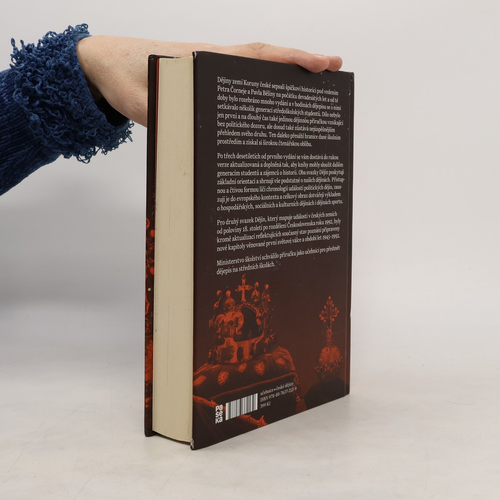 Nejúspěšnější učebnice dějin českých zemí se dočkala nového, revidovaného a doplněného vydání. Přehledná příručka poskytuje základní orientaci a shrnuje vše podstatné o našich dějinách na úrovni středoškolských znalostí. Přístupnou formou líčí chronologii událostí politických dějin, zasazuje je do evropského kontextu a celkový obraz dotváří výkladem o hospodářských, sociálních a kulturních dějinách. Od pravěku a počátků české státnosti je výklad doveden až k roku 1992, k rozdělení republiky. Od devadesátých let, kdy byla učebnice napsána, se projevila potřeba revizí a doplnění. Revidován byl celý text a pro toto vydání vznikly zcela nové kapitoly věnované pravěku, první světové válce a období let 1945–1992. Nově byly zpracovány mapy, částečně obměněn byl obrazový doprovod a dvoudílná kniha získala moderní grafický kabát. Historická příručka je dílem kolektivu renomovaných historiků ve složení Pavel Bělina, Petr Čornej, Ivana Čornejová, Jan Frolík, Jaroslav Halada, Jaroslav Hrbek, Dagmar Moravcová, Jiří Pernes, Jiří Pokorný, Jiří Rak, Josef Tomeš a Vratislav Vaníček.