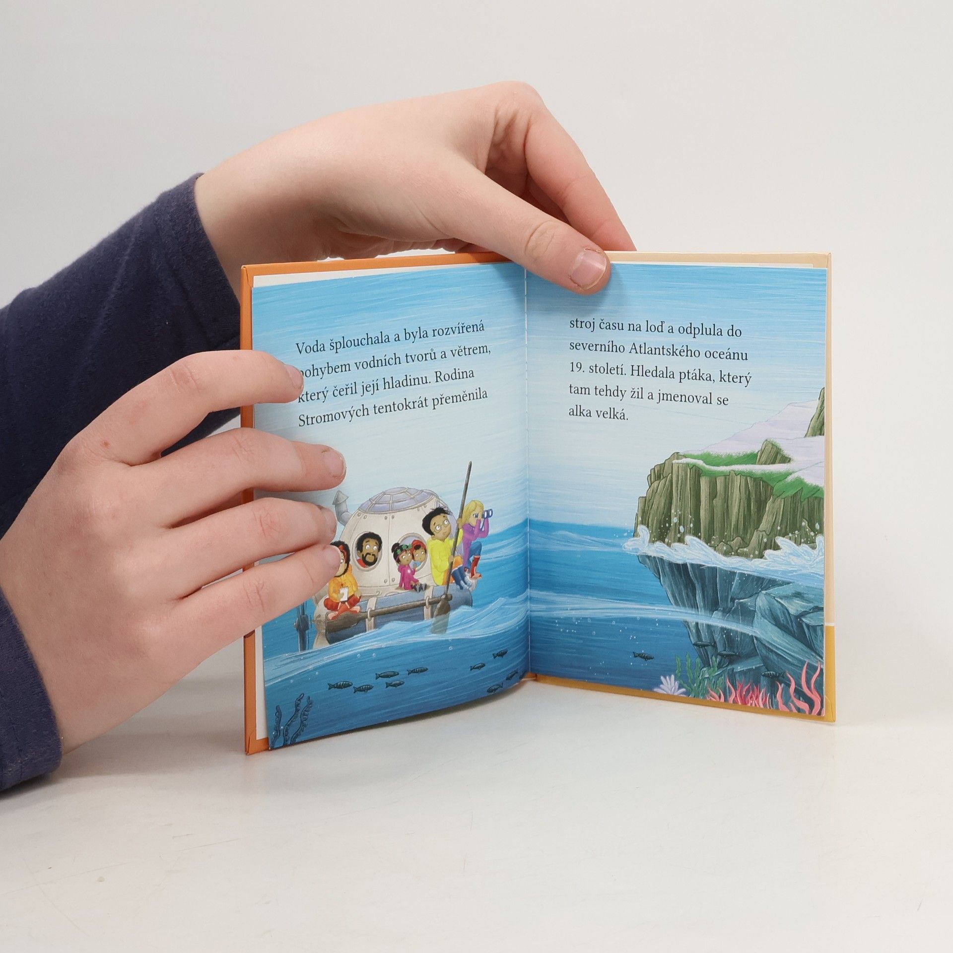 Stromovic dvojčata a jejich dobrodružství v divočině. Dvojčata se zdraví s alkou velkou, Cressida Cowell