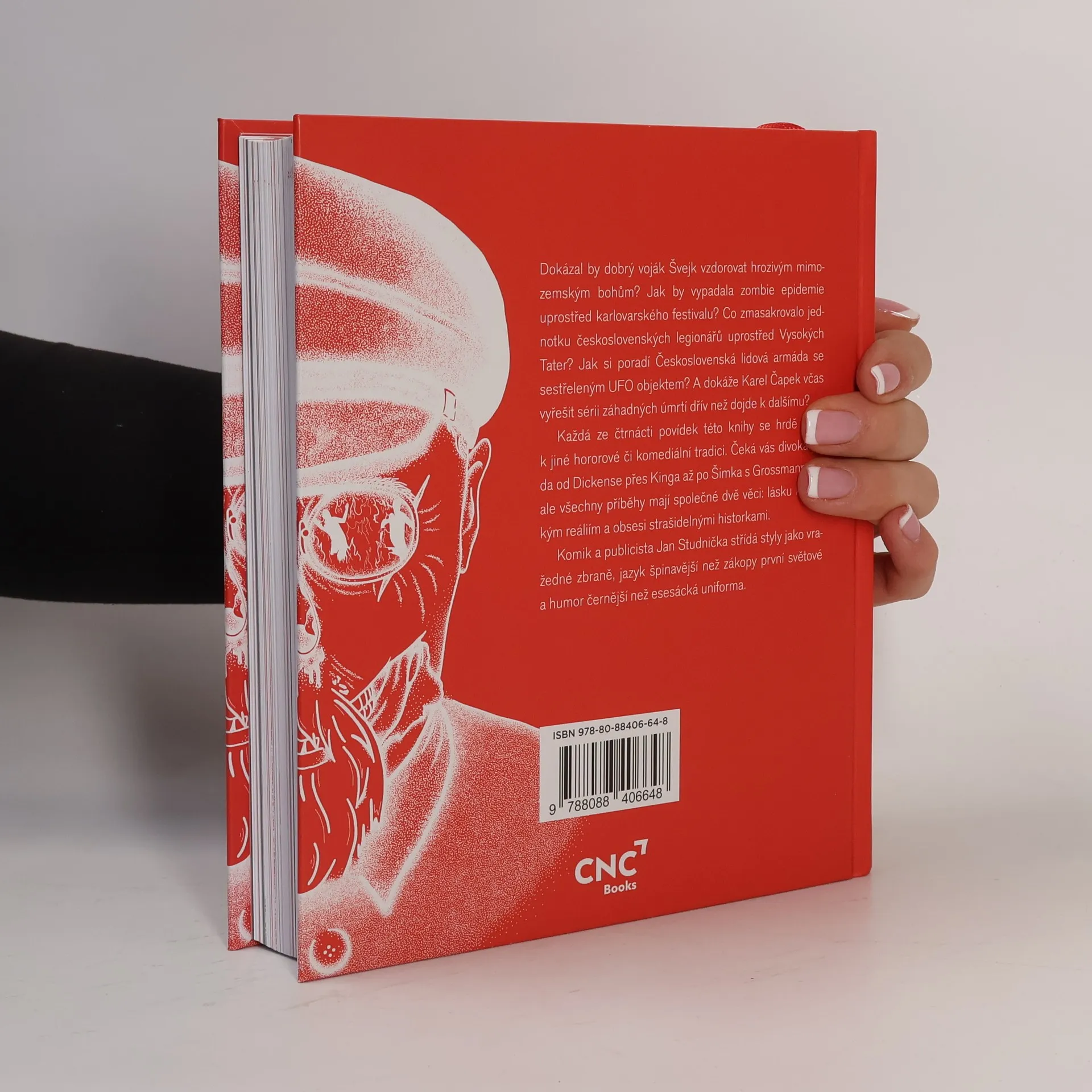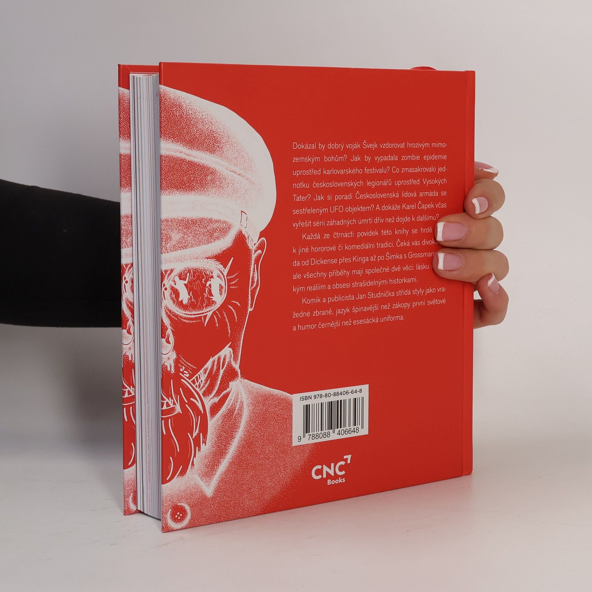 Komik a publicista Jan Studnička střídá styly jako vražedné zbraně, jazyk špinavější než zákopy první světové a humor černější než esesácká uniforma. Každá ze čtrnácti povídek této knihy se hrdě hlásí k jiné hororové či komediální tradici. Dokázal by dobrý voják Švejk vzdorovat hrozivým mimozemským bohům? Jak by vypadala zombie epidemie uprostřed karlovarského festivalu? Co zmasakrovalo jednotku československých legionářů uprostřed Vysokých Tater? Jak si poradí Československá lidová armáda se sestřeleným UFO objektem? A dokáže Karel Čapek včas vyřešit sérii záhadných úmrtí dřív než dojde k dalšímu? Čeká vás divoká jízda od Dickense přes Kinga až po Šimka s Grossmannem, ale všechny příběhy mají společné dvě věci: lásku k českým reáliím a obsesi strašidelnými historkami. Nakladatelská anotace. Kráceno.
