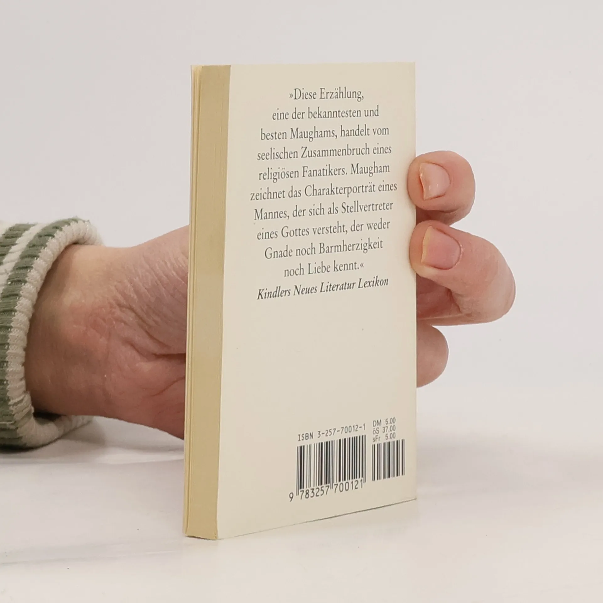 "Diese Erzählung, eine der bekanntesten Maughams, handelt vom seelischen Zusammenbruch eines religiösen Fanatikers. Maugham zeichnet das Charakterportrait eines Mannes, der sich als Stellvertreter Gottes versteht, der weder Gnade noch Barmherzigkeit noch Liebe kennt" Kindlers neues Literatur Lexikon