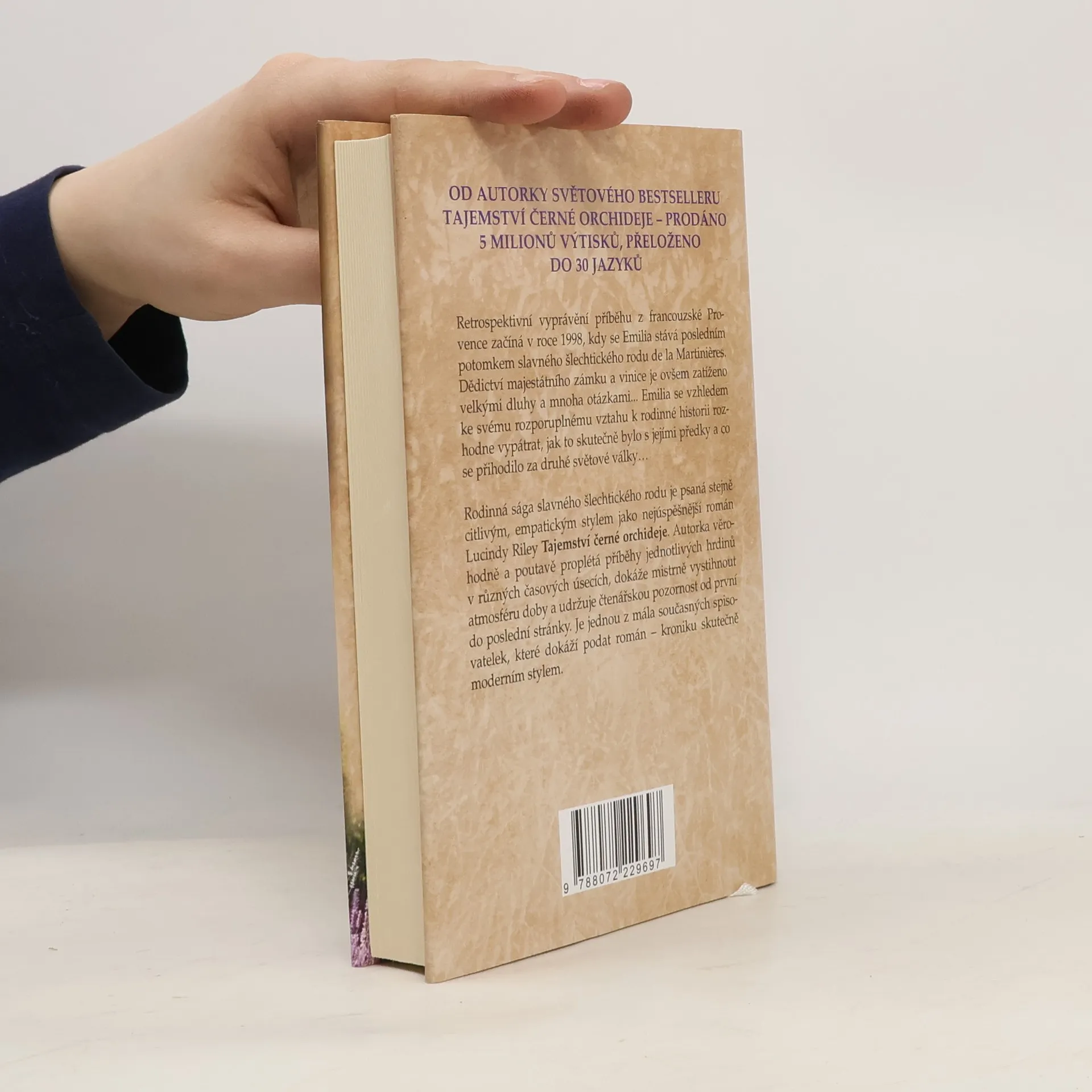 Retrospektivní vyprávění příběhu z francouzské Provence začíná v roce 1998, kdy se Emilia stává posledním potomkem slavného šlechtického rodu de la Martinie`res. Dědictví majestátního zámku a vinice je ovšem zatíženo velkými dluhy a mnoha otázkami... Emilia se vzhledem ke svému rozporuplnému vztahu k rodinné historii rozhodne vypátrat, jak to skutečně bylo s jejími předky a co se přihodilo za druhé světové války… Rodinná sága slavného šlechtického rodu je psaná stejně citlivým, emfatickým stylem jako nejúspěšnější román Lucindy Riley Tajemství černé orchideje. Autorka věrohodně a poutavě proplétá příběhy jednotlivých hrdinů v různých časových úsecích, dokáže mistrně vystihnout atmosféru doby a udržuje čtenářskou pozornost od první do poslední stránky. Je jednou z mála současných spisovatelek, které dokáží podat román – kroniku skutečně moderním stylem.