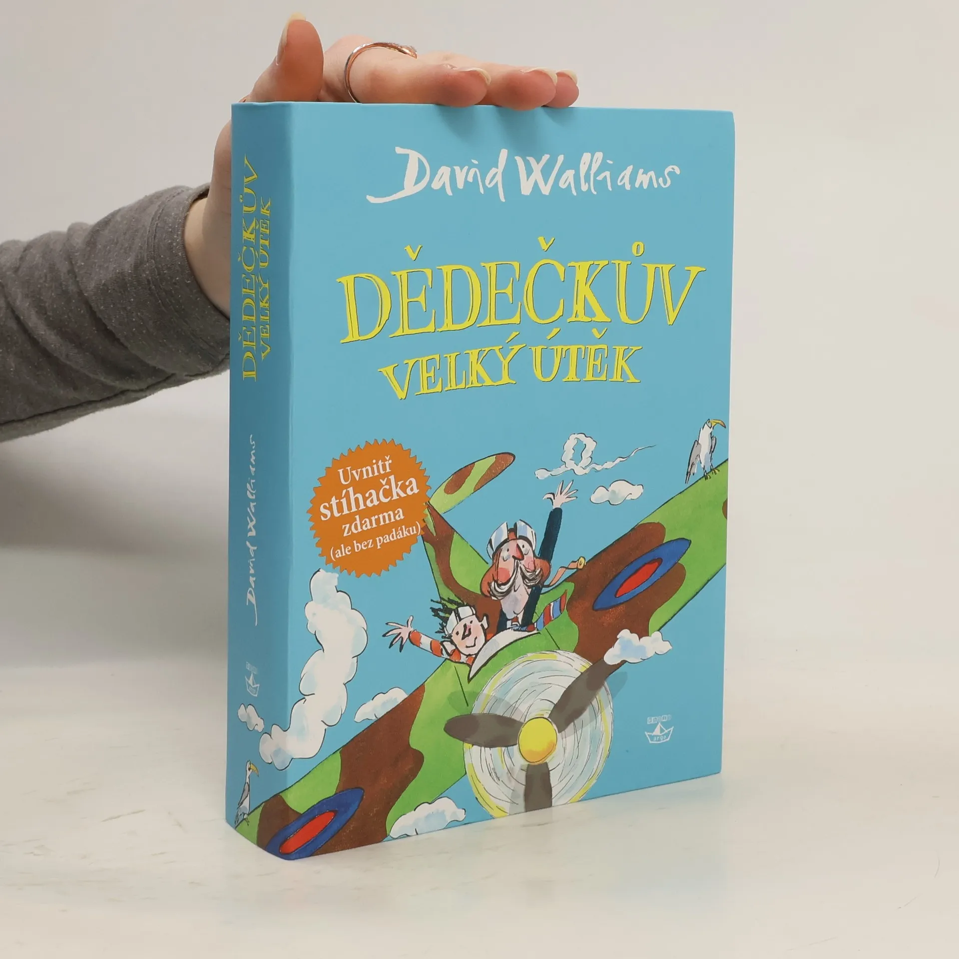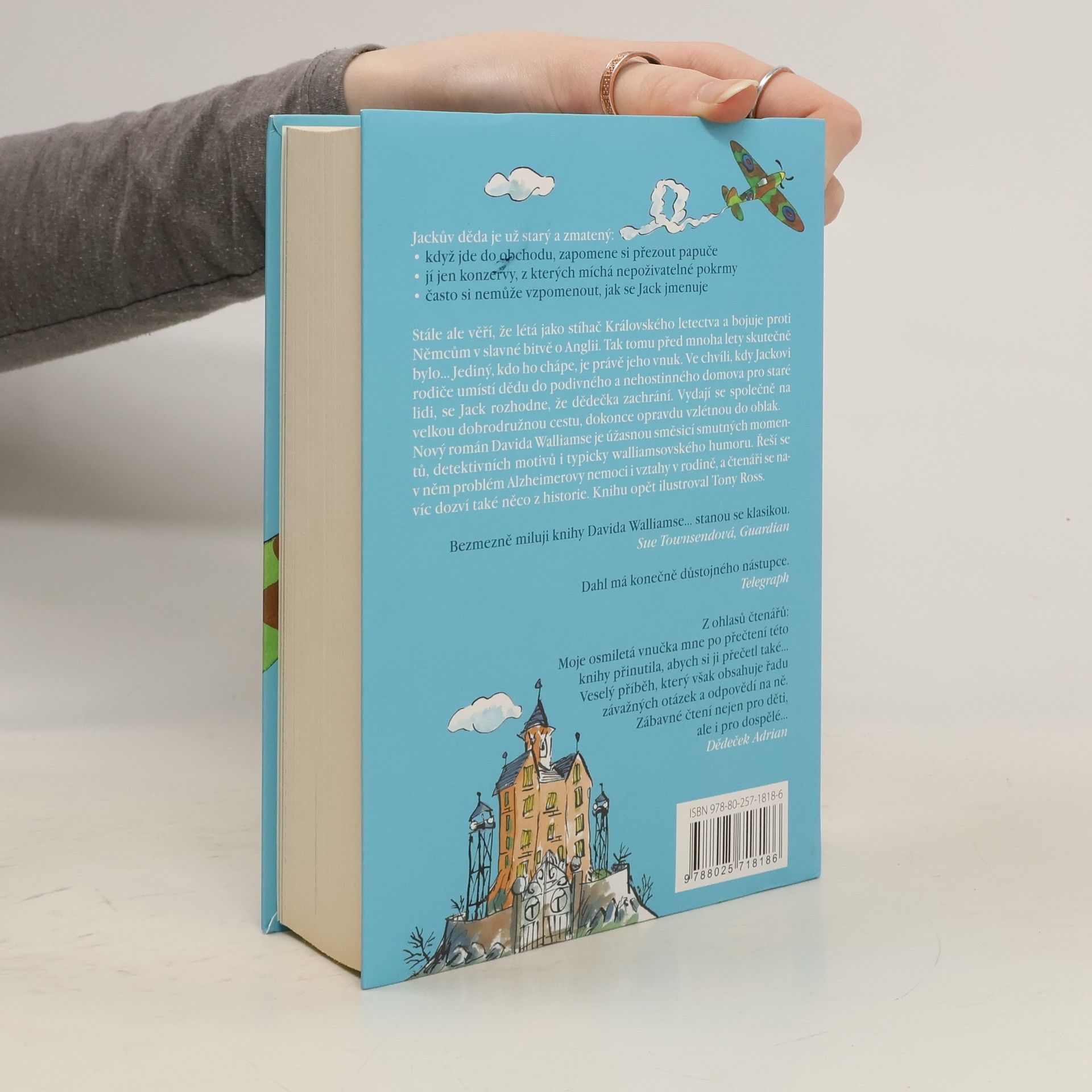 Jackův děda je už starý a zmatený: Když jde do obchodu, zapomene si přezout papuče. Jí jen konzervy, z kterých vytváří nepoživatelné míchanice. Často si nemůže vzpomenout, jak se Jack jmenuje. Stále ale věří, že létá jako stíhač Královského letectva a bojuje proti Němcům v slavné bitvě o Anglii. Tak tomu před mnoha lety skutečně bylo… Jediný, kdo ho chápe, je právě jeho vnuk. Ve chvíli, kdy Jackovi rodiče umístí dědu do podivného a nehostinného domova pro staré lidi, se Jack rozhodne, že dědečka zachrání. Vydají se společně na velkou dobrodružnou cestu, dokonce opravdu vzlétnou do oblak. Nový román Davida Walliamse je úžasnou směsicí smutných momentů, detektivních motivů i typicky walliamsovského humoru. Řeší se v něm problém Alzheimerovy nemoci, vztahy v rodině a čtenáři se navíc dozví i něco z historie. Knihu opět ilustroval Tony Ross.