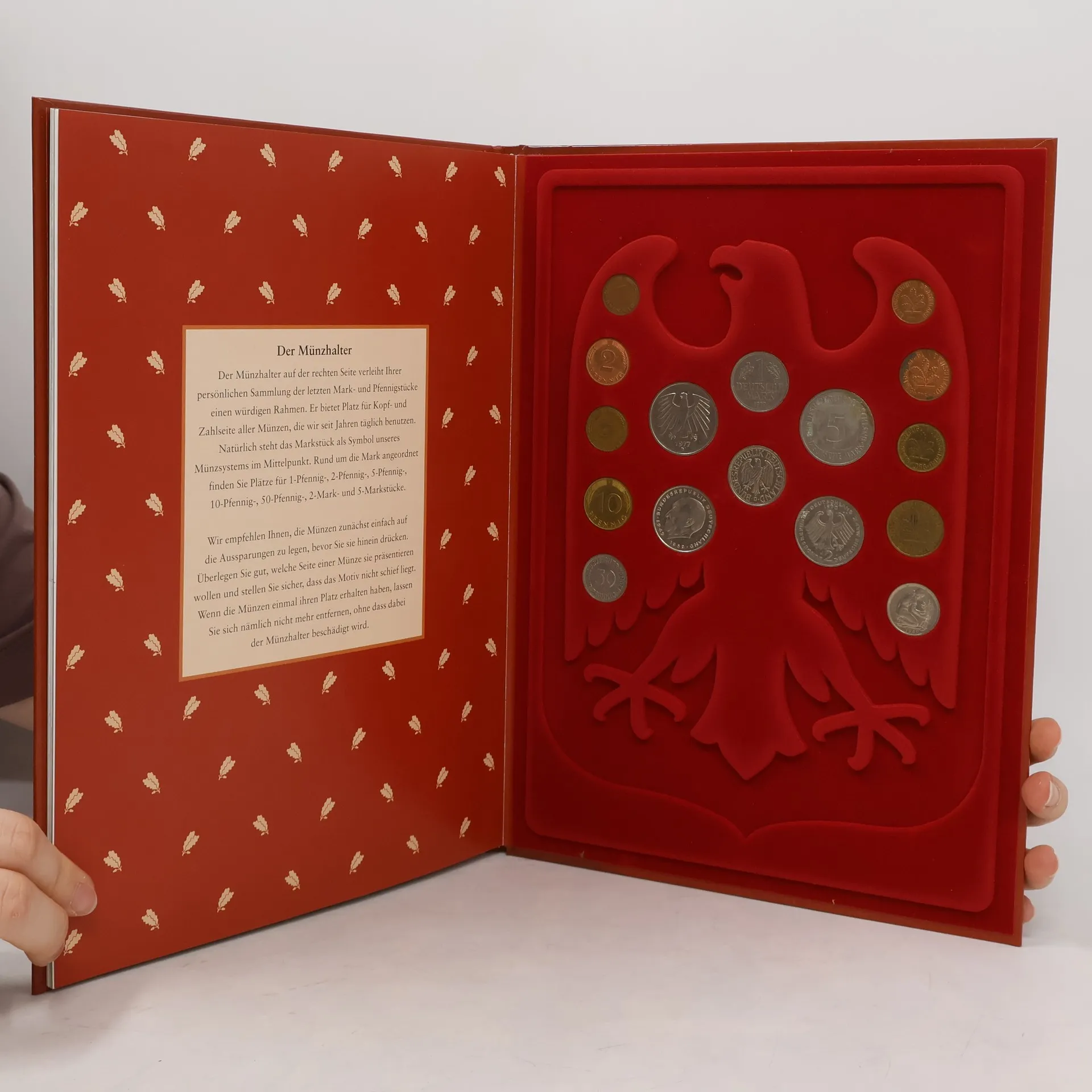 Im Jahr 2002 heißt es Abschied nehmen von der D-Mark. Mit der endgültigen Einführung des Euro geht die rund 130jährige Geschichte unserer Währung zu Ende. Mit diesem Gedenkbuch soll würdevoll von der D-Mark Abschied genommen werden. §Das Buch führt durch die Vergangenheit und erkundet die Entstehungsgeschichte der Mark, ihre Entwicklung vom Kaiserreich bis in die Gegenwart. §Zudem erfahren Sie alles Wissenswerte über die Produktion von Münzen und können Sie entdecken, welch reiche Tradition sich hinter den augenscheinlich unbedeutenden Details auf unseren Geldstücken verbirgt. §Im hinteren Teil des Buches finden Sie einen Münzhalter, in dem Sie die letzten Pfennig- und Markstücke aufbewahren können - eine schöne Erinnerung.