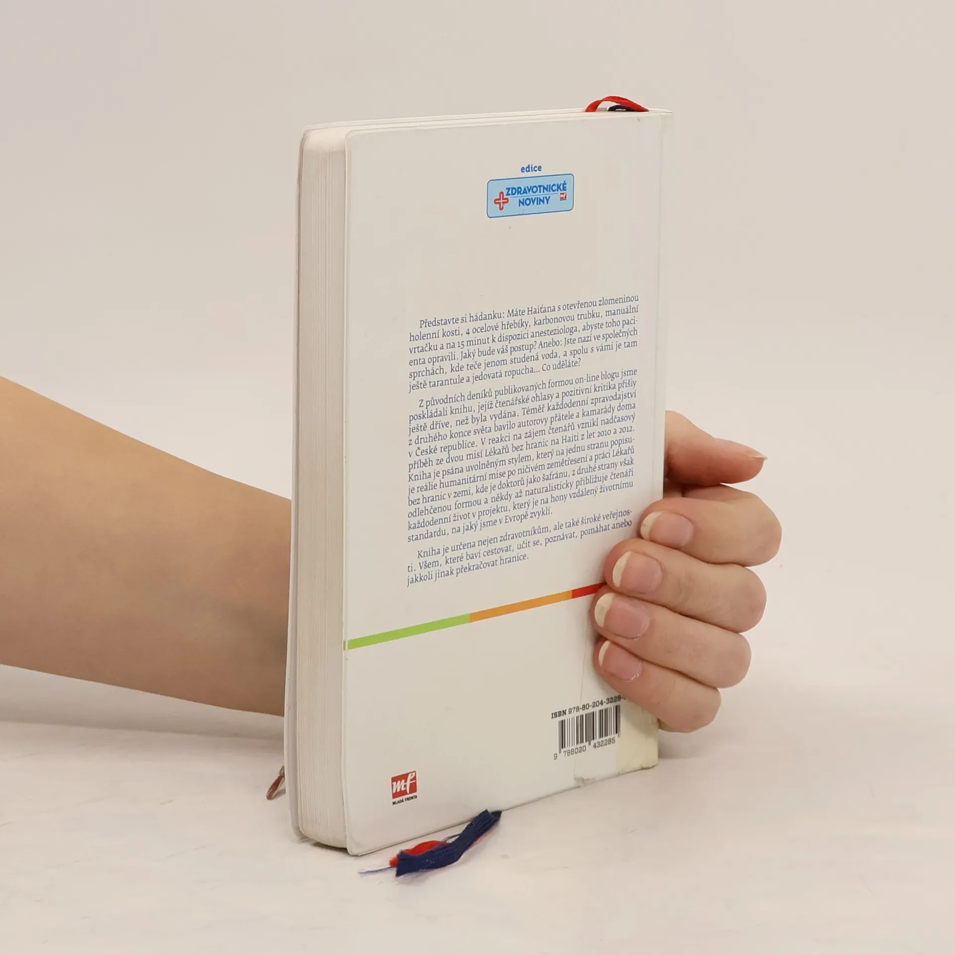 Představte si hádanku: Máte Haiťana s otevřenou zlomeninou holenní kosti, 4 ocelové hřebíky, karbonovou trubku, manuální vrtačku a na 15 minut k dispozici anesteziologa, abyste toho pacienta opravili. Jaký bude váš postup? Anebo: Jste nazí ve společných sprchách, kde teče jenom studená voda, a spolu s vámi je tam ještě tarantule a jedovatá ropucha… Co uděláte? Z původních deníků publikovaných formou on-line blogu jsme poskládali knihu, jejíž čtenářské ohlasy a pozitivní kritika přišly dříve, než byla vydána. Téměř každodenní zpravodajství z druhého konce světa bavilo autorovy přátele a kamarády doma v České republice. V reakci na ohlasy čtenářů vznikl nadčasový příběh ze dvou misí Lékařů bez hranic na Haiti z let 2010 a 2012. Kniha je psána uvolněným stylem, který na jednu stranu popisuje reálie humanitární mise po ničivém zemětřesení a práci Lékařů bez hranic v zemi, kde je doktorů jako šafránu, z druhé strany však odlehčenou formou a někdy až naturalisticky přibližuje čtenáři každodenní život v projektu, který je na hony vzdálený životnímu standardu, na jaký jsme v Evropě zvyklí. Kniha je určena nejen zdravotníkům, ale také široké veřejnosti. Všem, které baví cestovat, učit se, poznávat, pomáhat anebo jakkoli jinak překračovat hranice.