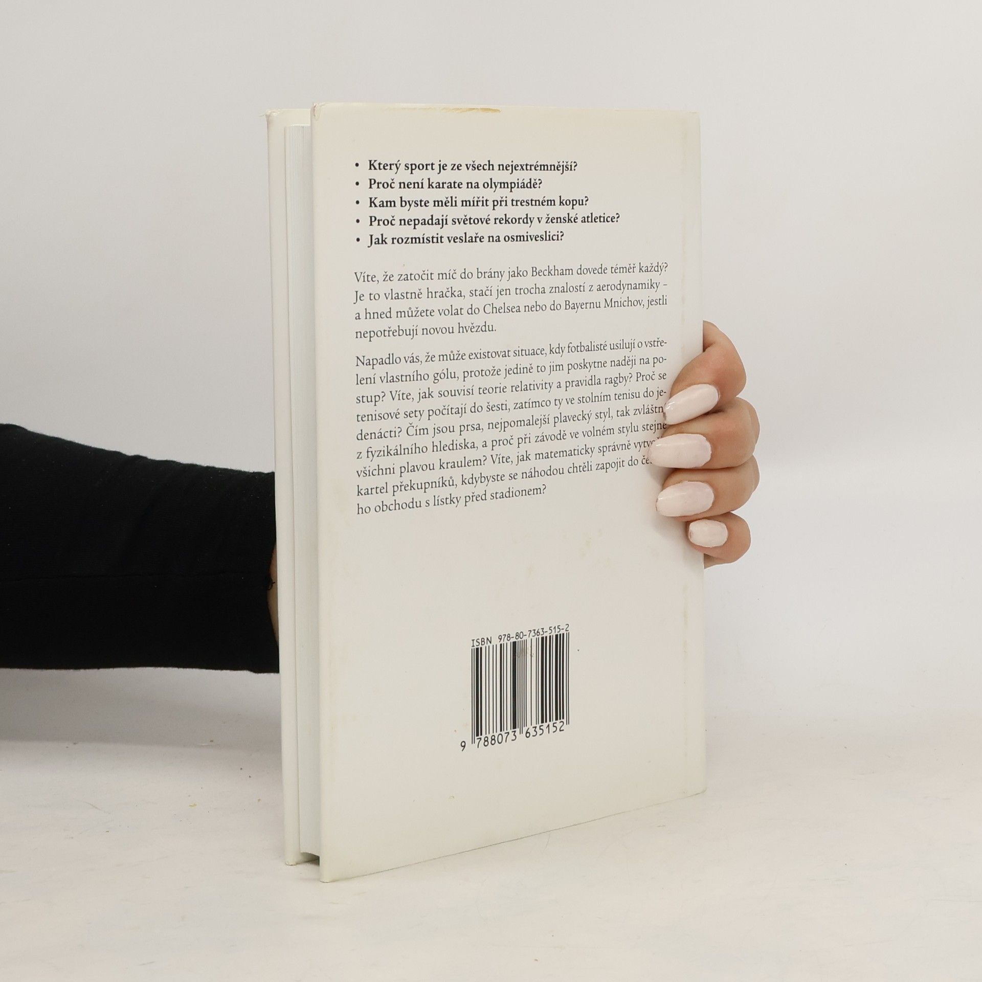 Matematika a sport souvisí na první pohled jen vzdáleně. Ale opravdu jen na první pohled. V nové knize Johna D. Barrowa se můžete přesvědčit, že matematika stojí nejen za špičkovými výkony, ale i za losováním zápasů, sestavováním tabulek vítězů, výběrem olympijských sportů... zkrátka za všemi aspekty sportu. Uvidíte v novém světle temná mysteria běhu, skoku, plavání, střílení branek či odpalování míčů napříč všemi sportovními odvětvími. Ať už jste sportovcem aktivním a počítáte svoje sekundy a metry, nebo se rozumně věnujete počítání sekund a gólů někoho jiného v pohodlí svého gauče, určitě vás bude zajímat, co za tím vším je a jaké tajemné síly umožňují vítězi zvítězit. Budete fascinováni zjištěním, proč většina skokanů skáče do výšky Fosburyho flopem, jak mohl Usain Bolt zlomit svůj rekord, přestože neběžel o nic rychleji, proč Velká Británie nehraje na olympiádě fotbal, jak fungují (zakázané) hydrofobní plavky nebo jak je možné, že některé míče zdánlivě porušují fyzikální zákony. Tento čtenářský zážitek potěší každého, kdo miluje sport nebo půvabné matematické úlohy - a také mu pomůže jeho koníček intenzivněji prožít.