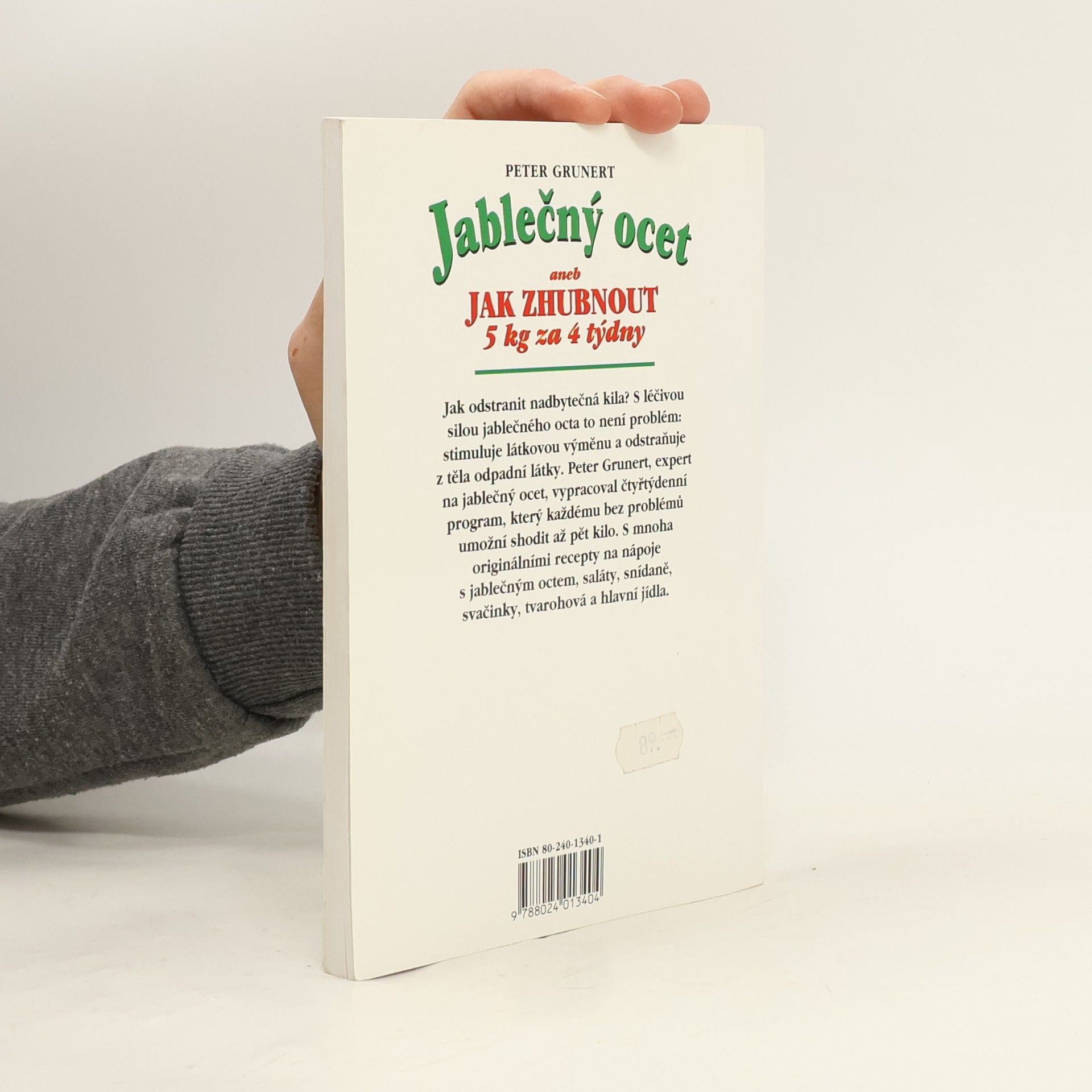 Podtitulek zní : aneb Jak zhubnout 5 kg za 4 týdny. Jak odstranit nadbytečná kila ? S léčivou silou jablečného octa to není problém : stimuluje látkovou výměnu a odstraňuje z těla odpadní látky. Peter Grunert, expert na jablečný ocet, vypracoval čtyřtýdenní program, který každému bez problémů umožní shodit až 5 kilo. S mnoha originálními recepty na nápoje s jablečným octem, saláty, snídaně, svačinky, tvarohová, ale i hlavní jídla.