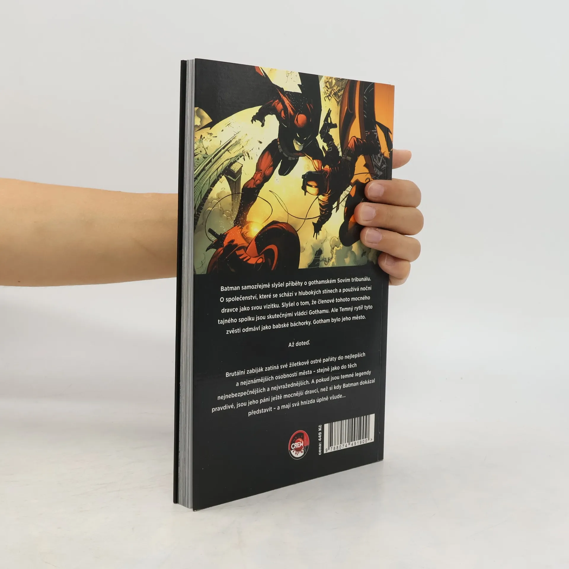 Batman samozřejmě slyšel příběhy o gothamském Sovím tribunálu. O společenství, které se schází v hlubokých stínech a používá noční dravce jako svou vizitku. Slyšel o tom, že členové tohoto mocného tajného spolku jsou skutečnými vládci Gothamu. Ale Temný rytíř tyto zvěsti odmávl jako babské báchorky. Gotham bylo jeho město. Až doteď. Brutální zabiják zatíná své žiletkově ostré pařáty do nejlepších a nejznámějších osobností města – stejně jako do těch nejnebezpečnějších a nejvražednějších. A pokud jsou temné legendy pravdivé, jsou páni města ještě mocnější dravci, než si kdy Batman dokázal představit – a mají svá hnízda úplně všude... Hvězdný tým složený ze scenáristy Scotta Snydera a Grega Capulla hrdě uvádí závratnou ságu tajemství a děsu!