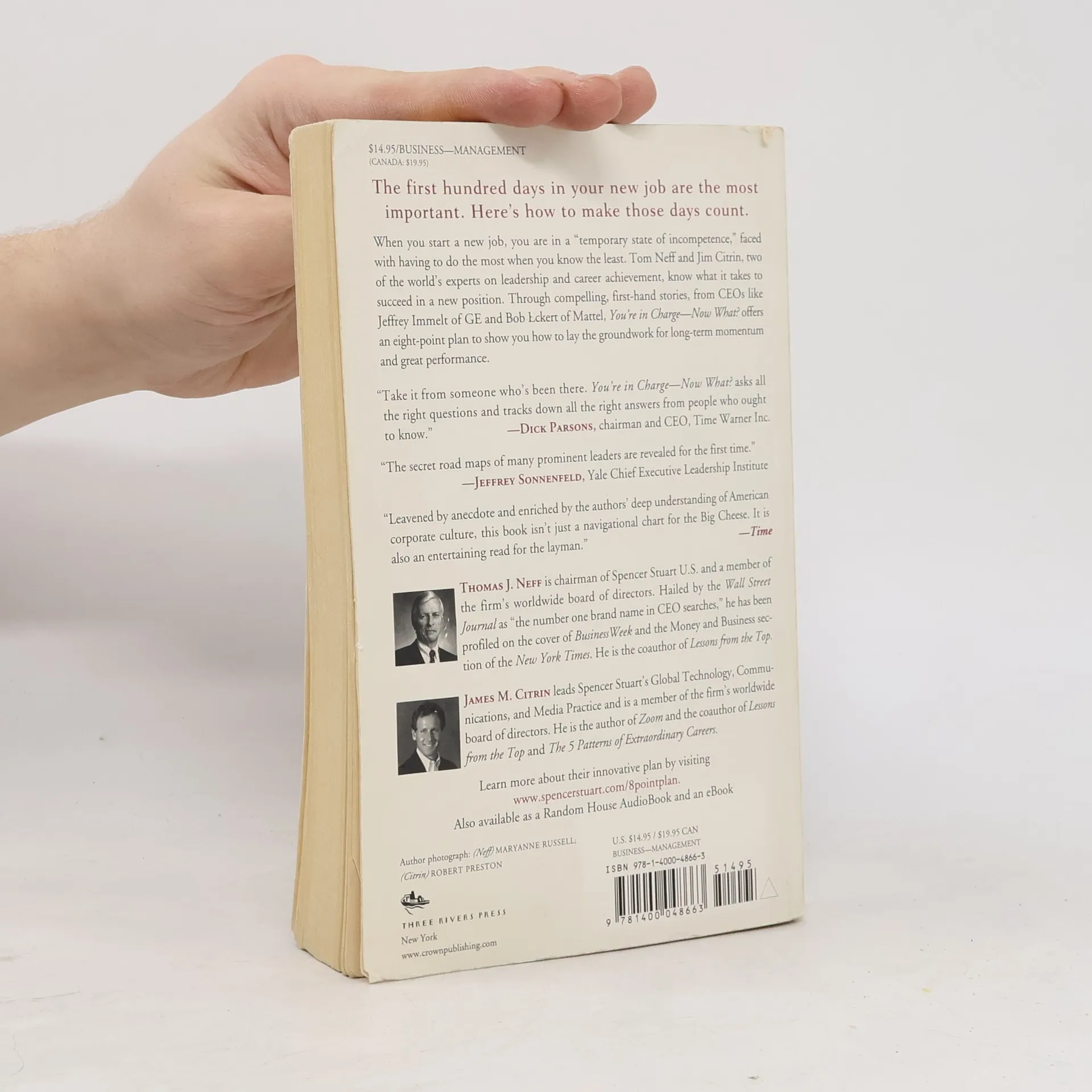 When you start a new job, you are in a “temporary state of incompetence,” faced with having to do the most when you know the least. Tom Neff and Jim Citrin, two of the world’s experts on leadership and career achievement, know what it takes to succeed in a new position. Through compelling, first-hand stories, from CEOs like Jeffrey Immelt of GE and Bob Eckert of Mattel, You’re in Charge—Now What? offers an eight-point plan to show you how to lay the groundwork for long-term momentum and great performance.