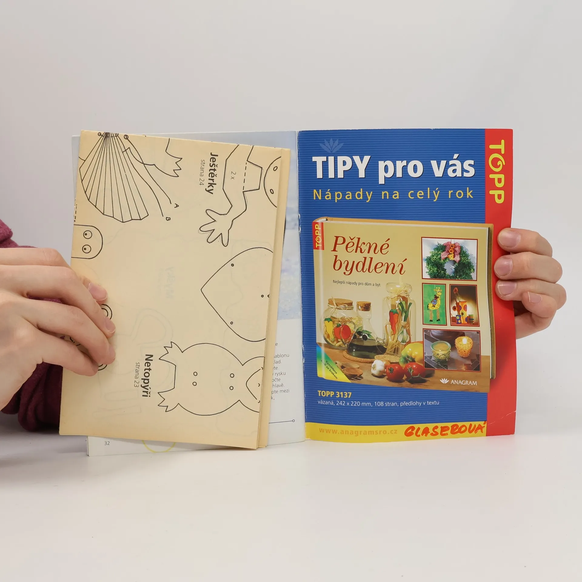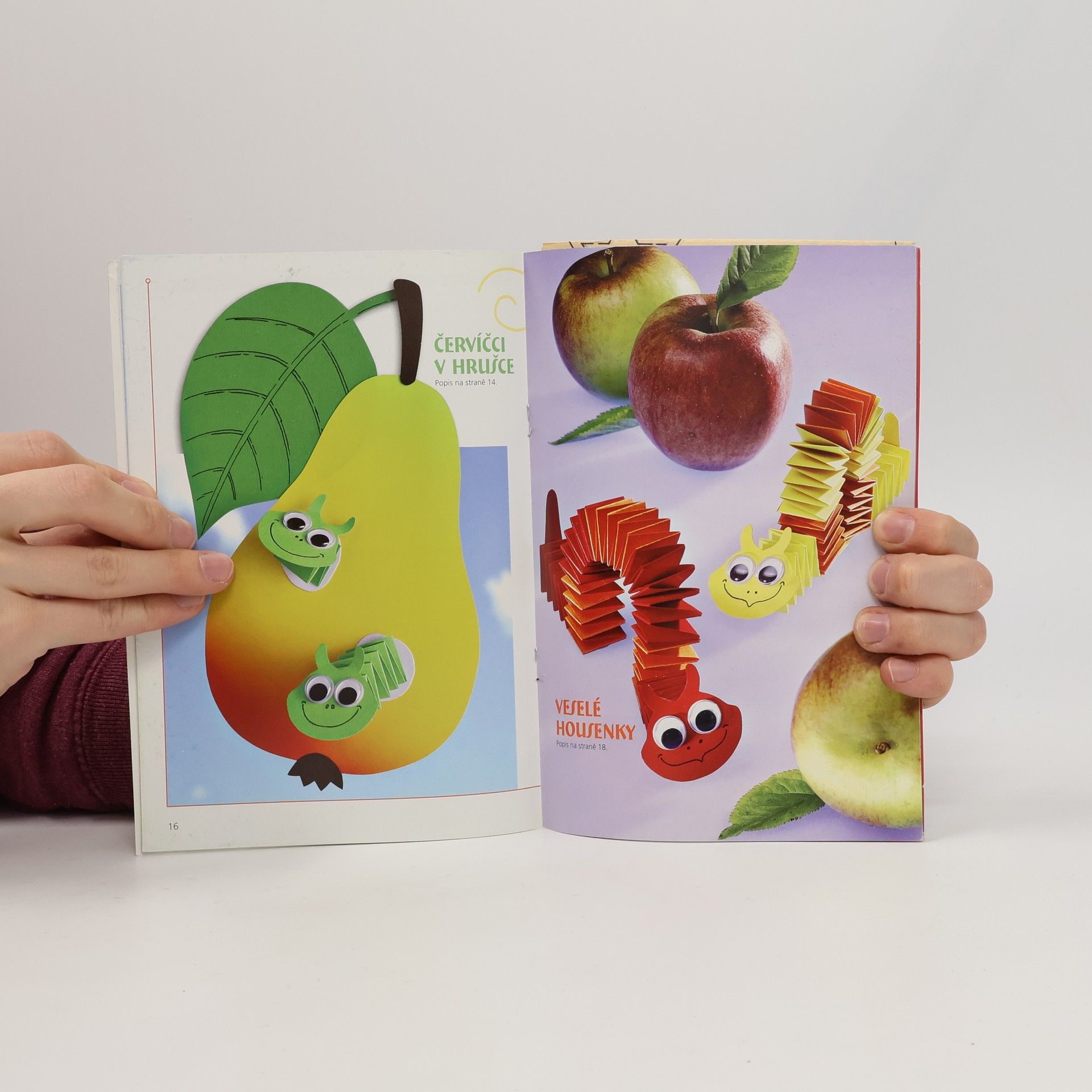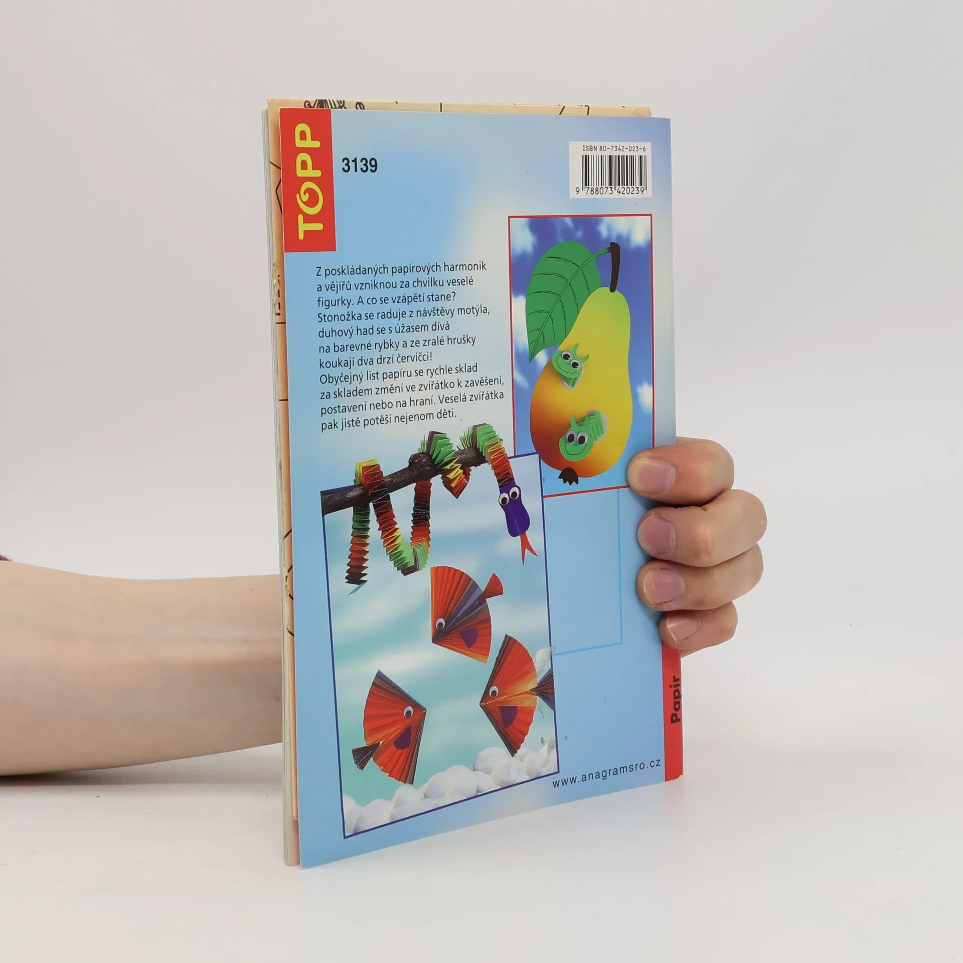 Z poskládaných harmonik a vějířů vzniknou veselé figurky. Stonožka má radost z návštěvy motýla, duhový had pozoruje s úžasem barevné rybky a ze zralé hrušky vykukují dvě drzé housenky. Jednoduchý list papíru se tak rázem promění sklad za skladem na zvířátko k zavěšení, postavení či na hraní. Jistě potěší nejen ty nejmenší. Vložena předloha v originální velikosti