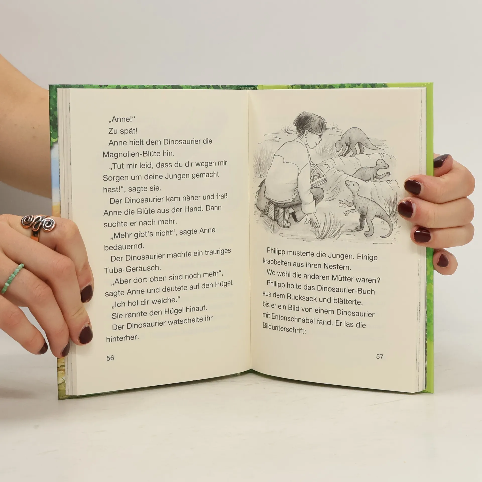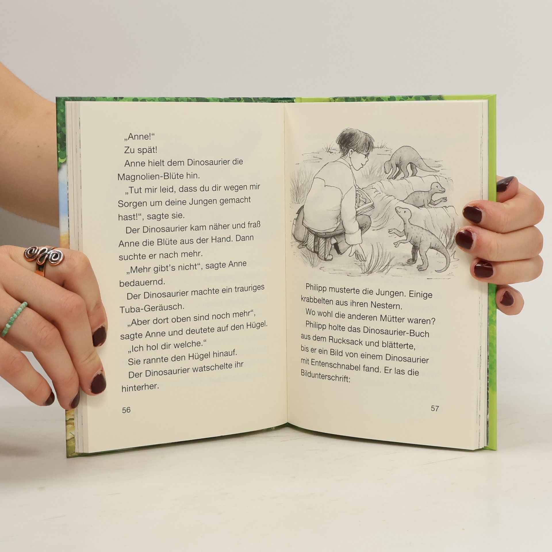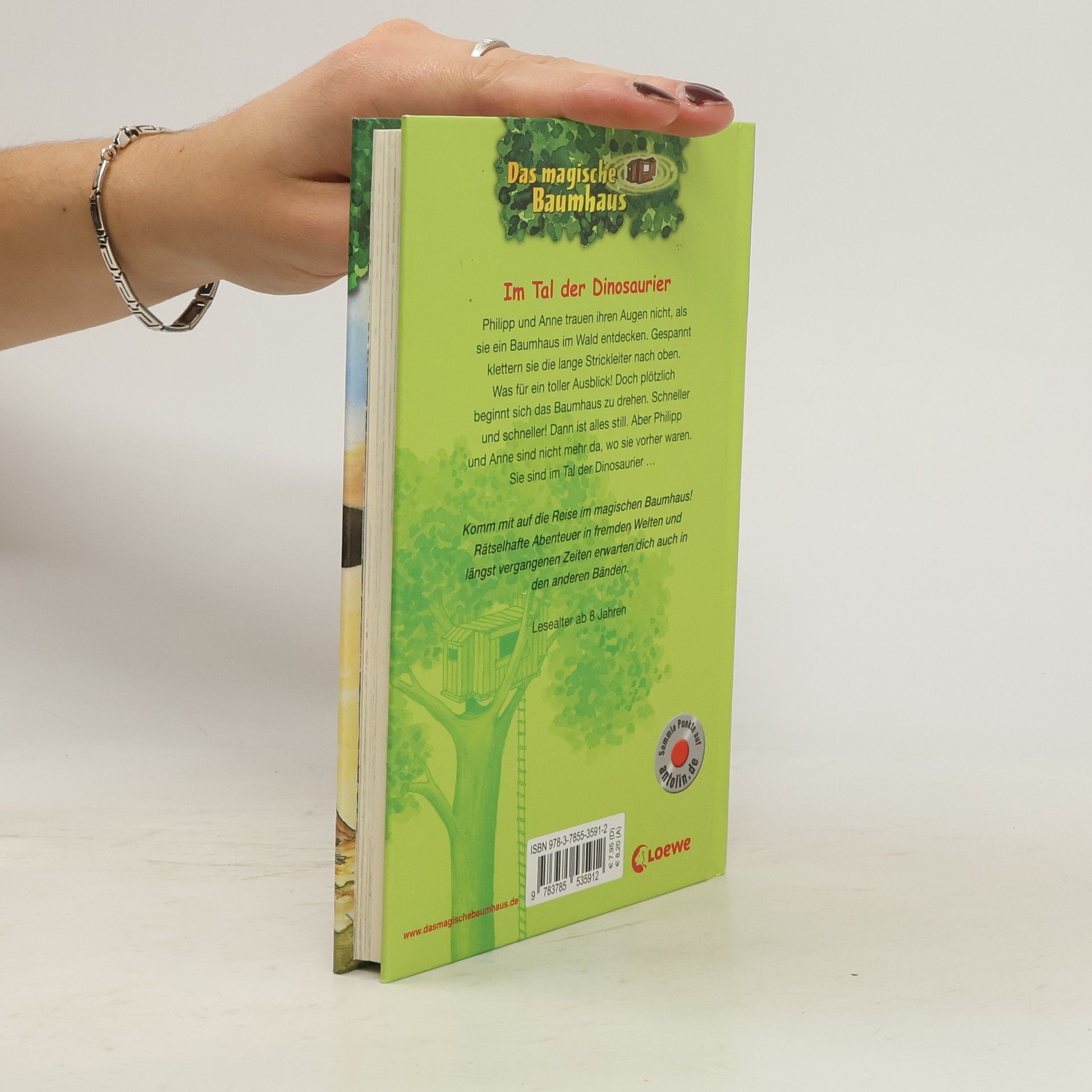 Philipp und Anne trauen ihren Augen nicht, als sie im Wald ein verborgenes Baumhaus entdecken. Gespannt klettern sie die lange Strickleiter nach oben. Was für ein toller Ausblick! Doch plötzlich beginnt sich das Baumhaus zu drehen. Schneller und schneller! Dann ist alles still. Aber Philipp und Anne sind nicht mehr da, wo sie vorher waren. Sie sind im Tal der Dinosaurier ...