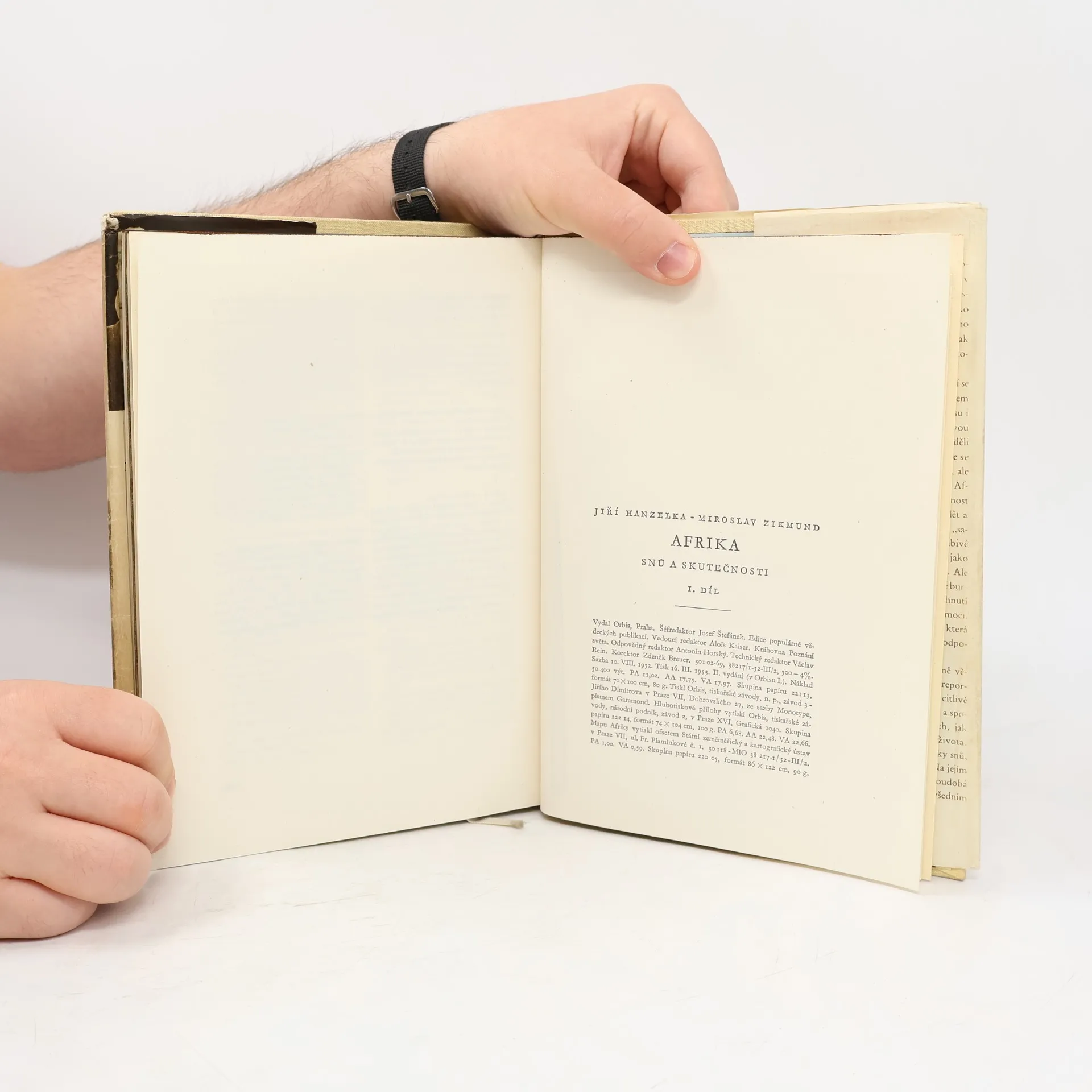 Jiří Hanzelka a Miroslav Zikmund nás seznamují s Afrikou dneška, zbavenou ilusí a vysněných představ. Ukazují čtenáři i její historii, její přírodní krásy a zajímavosti. 1. svazek cestopisného díla o Africe líčí dojmy a poznatky autorů při jejich cestě automobilem z Prahy přes Bavory,Švýcarsko a jižní Francii a pak z Casablancy po severoafrickém pobřeží, Marokem, Alžírem, Tunisem, Tripolskem, Cyrenaikou do Alexandrie a Káhiry, Port Saidu, podél Nilu do Sudanu a Eritreje. Všímají si nejen všedního života domorodého obyvatelstva a exotických zvláštností, ale též politických poměrů koloniální praxe imperialistických mocností, vyprávějí o vykořisťování afrického obyvatelstva i o osvobozenském hnutí koloniálních národů. 240 fotografii + ilustrace