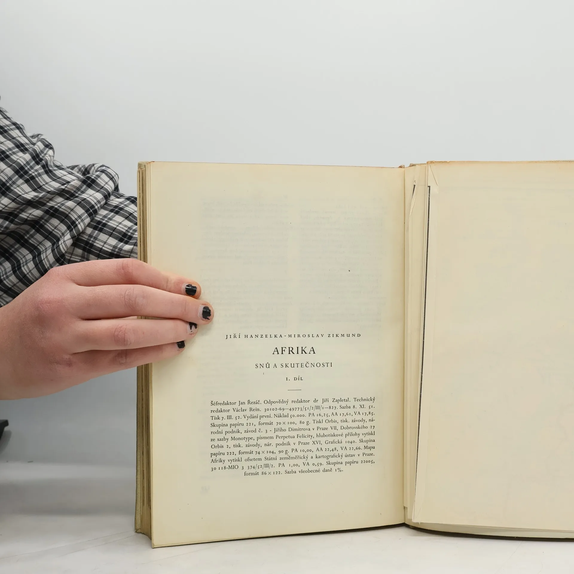 Jiří Hanzelka a Miroslav Zikmund nás seznamují s Afrikou dneška, zbavenou ilusí a vysněných představ. Ukazují čtenáři i její historii, její přírodní krásy a zajímavosti. 1. svazek cestopisného díla o Africe líčí dojmy a poznatky autorů při jejich cestě automobilem z Prahy přes Bavory,Švýcarsko a jižní Francii a pak z Casablancy po severoafrickém pobřeží, Marokem, Alžírem, Tunisem, Tripolskem, Cyrenaikou do Alexandrie a Káhiry, Port Saidu, podél Nilu do Sudanu a Eritreje. Všímají si nejen všedního života domorodého obyvatelstva a exotických zvláštností, ale též politických poměrů koloniální praxe imperialistických mocností, vyprávějí o vykořisťování afrického obyvatelstva i o osvobozenském hnutí koloniálních národů. 240 fotografii + ilustrace