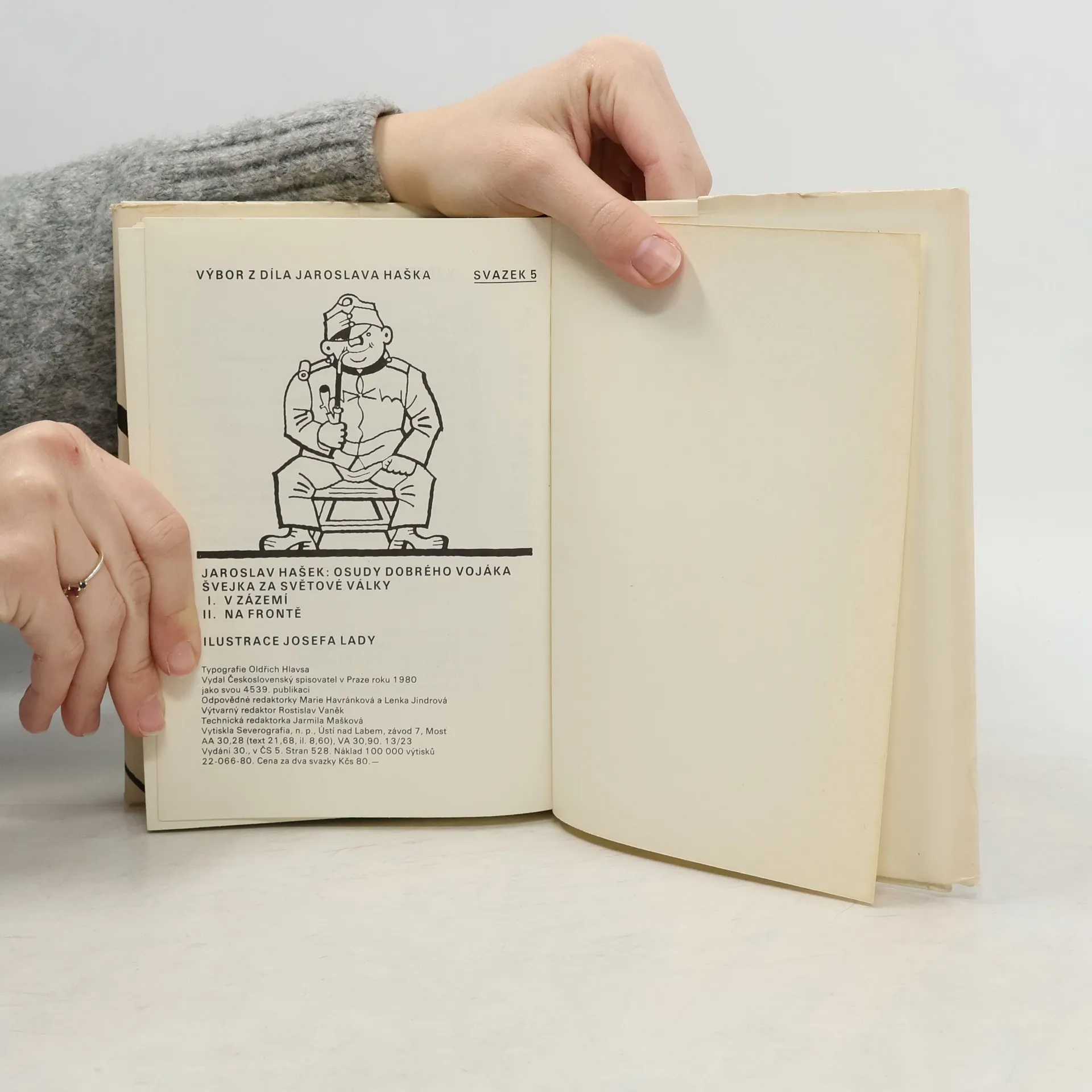 Vydáno k 100. výročí narození Jaroslava Haška. Díl první: V zázemí (1921) – Díl druhý: Na frontě (1922). Dobrý voják Švejk je jedna z nejznámějších a nejoblíbenějších postav nejen české, ale i světové literatury. Svědčí o tom spolu s četnými vydáními doma a v zahraničí také skutečnost, že se z díla stala v pravém slova smyslu klasika, která se neustále čte a cituje. Možná bychom mohli mluvit i o součásti naší národní povahy, ať už v dobrém nebo pejorativním smyslu. Švejk, hostinský Palivec, polní kurát Katz, nadporučík Lukáš, sapér Vodička, Baloun a další postavičky nadále žijí svým životem.