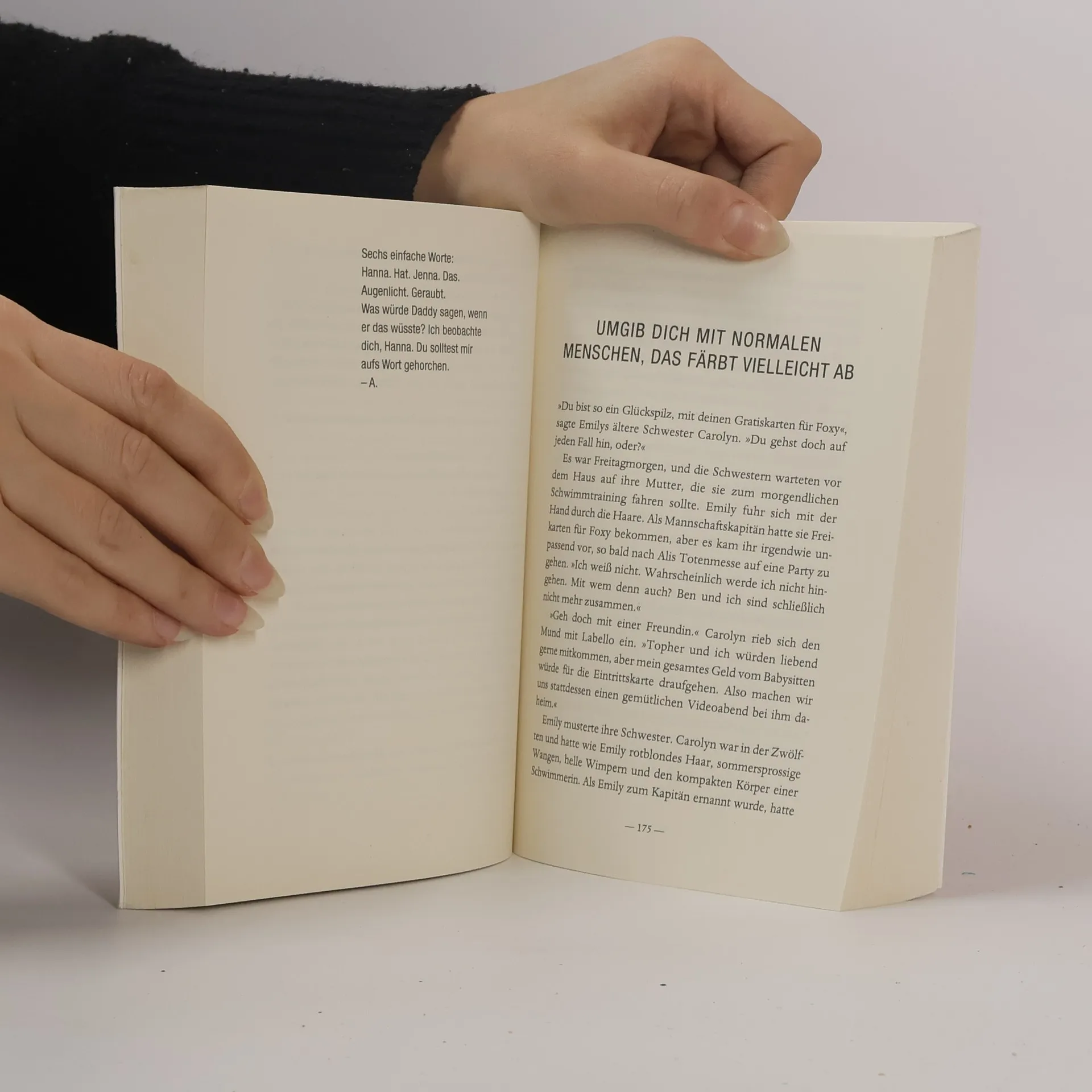 Vier Mädchen, ein dunkles Geheimnis Spencer, Aria, Emily und Hanna waren einmal beste Freundinnen. Eine Clique, die wie Pech und Schwefel zusammenhielt, ein einzigartiges Team in Rosedale. Aber das war vorher. Bevor das mit Alison passierte. Denn Alison, Anführerin und Intrigantin extraordinaire, ist eines Tages spurlos verschwunden. Bis Nachrichten vom mysteriösen Absender „A.“ auftauchen und Spencer und ihre Freundinnen heimsuchen… Spencer, Aria, Emily und Hanna geraten immer tiefer ins Netz der Lügen und Intrigen. Als Emily herausfindet, dass Toby, Jennys Bruder, bestens über die Aktionen des Kleeblatts im Bilde ist, sind sich bald einig: Toby ist A.! Ein fesselnde Pagteturner mit Kultstatus - bei den „Pretty Little Liars“ ist Suchtgefahr garantiert! Diese Reihe bietet eine unwiderstehliche Mischung für Fans von jeder Menge Glamour und tödlichen Intrigen.