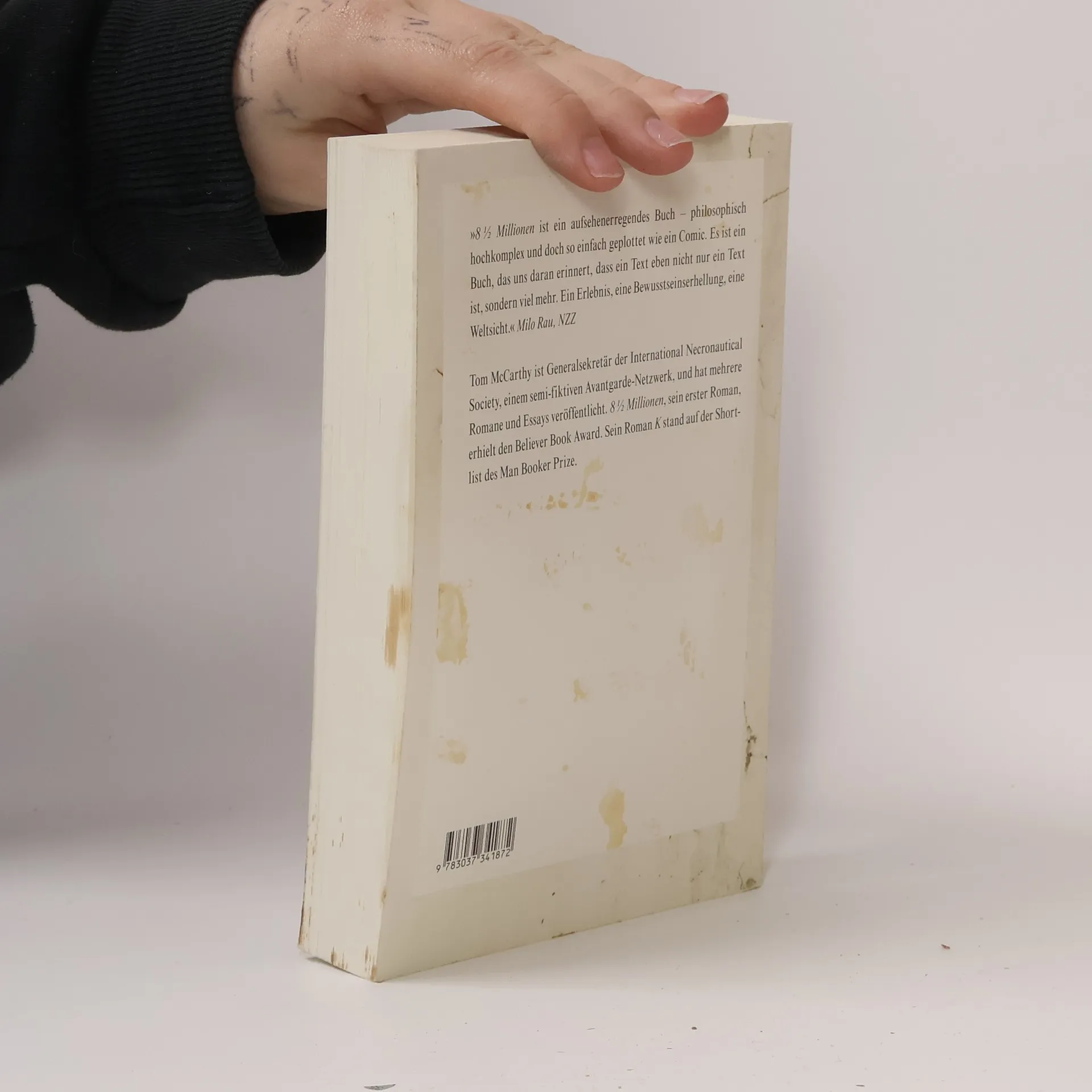 Ein Mann steht zur falschen Zeit am falschen Ort und hat auf einmal zwei Probleme: Was macht man mit einer Abfindung von 8 ½ Millionen und vor allem: Wie lässt sich ein Leben wieder ins Lot bringen, dem abgeht, was zuvor selbstverständlich war – die Selbstverständlichkeit? Eine Lösung scheint sich aufzutun, als ihn beim Anblick eines Risses in einer fremden Badezimmerwand plötzlich ein immenses Glücksgefühl überkommt: Da war einmal ein identischer Riss und um ihn herum hatte es einen Alltag gegeben, eine Wohnung, einen Ausblick, Gerüche, Klänge. Vor allem aber das Gefühl, lebendig zu sein. Fortan verwendet der namenlose Ich-Erzähler alles darauf, sich diesen Alltag zurückzuholen: als Realität zum An- und Ausschalten, Vor- und Zurückspulen, in Endlosschleife: und all dies nur um jenes kurzen Kribbelns der Authentizität willen. Doch es ist nie genug, der Stoff macht süchtig, der Realisierungszwang gerät außer Kontrolle… Bei Tom McCarthy werden Millionen verflüssigt und Ideen verfestigt, doch die Realität sträubt sich gegen Spekulation in jeder Hinsicht. Sein Debüt verteidigt auf so ironische wie unterhaltsame Weise den Ruf der guten alten Materie: matter matters . Die Literatur konnte noch nie ohne ihren Stoff. Hier meldet sich ein Autor zu Wort, der diese Erkenntnis neu reklamiert: voller Sprach- und Aberwitz, beste britische Tradition.