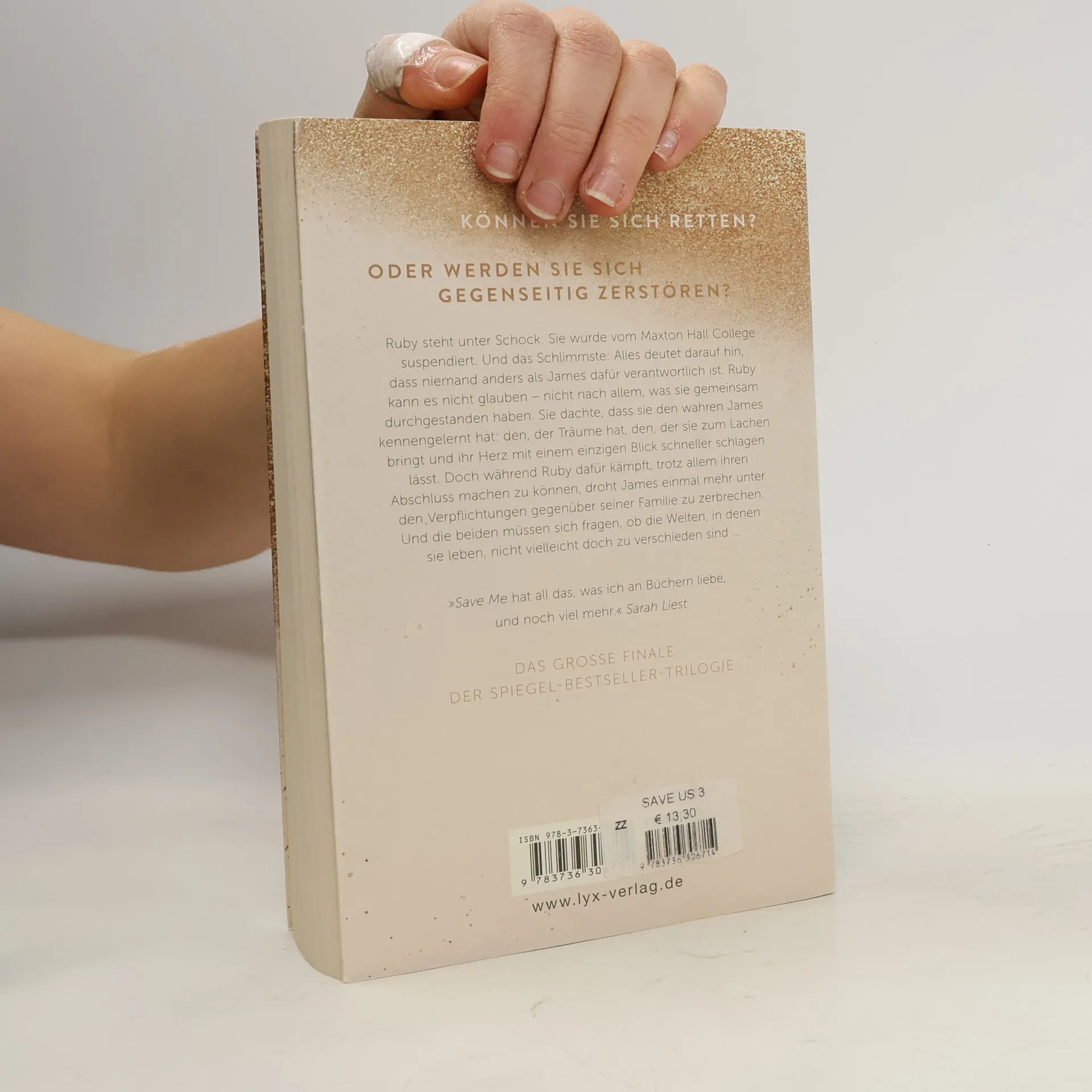 Können sie sich retten? Oder werden sie sich gegenseitig zerstören? Ruby steht unter Schock: Sie wurde vom Maxton-Hall-College suspendiert. Und das Schlimmste: Alles deutet darauf hin, dass niemand anders als James dafür verantwortlich ist. Ruby kann es nicht glauben - nicht nach allem, was sie gemeinsam durchgestanden haben. Sie dachte, dass sie den wahren James kennengelernt hat: den, der Träume hat, den, der sie zum Lachen bringt und ihr Herz mit einem einzigen Blick schneller schlagen lässt. Doch während Ruby dafür kämpft, trotz allem ihren Abschluss machen zu können, droht James einmal mehr unter den Verpflichtungen gegenüber seiner Familie zu zerbrechen. Und die beiden müssen sich fragen, ob die Welten, in denen sie leben, nicht vielleicht doch zu verschieden sind ... „ Save Me hat all das, was ich an Büchern liebe, und noch viel mehr.“ Sarah-liest „Gefühlvoll, mitreißend, voller Liebe.“ Nichtohnebuch Das große Finale der mitreißenden Liebesgeschichte von Ruby und James!