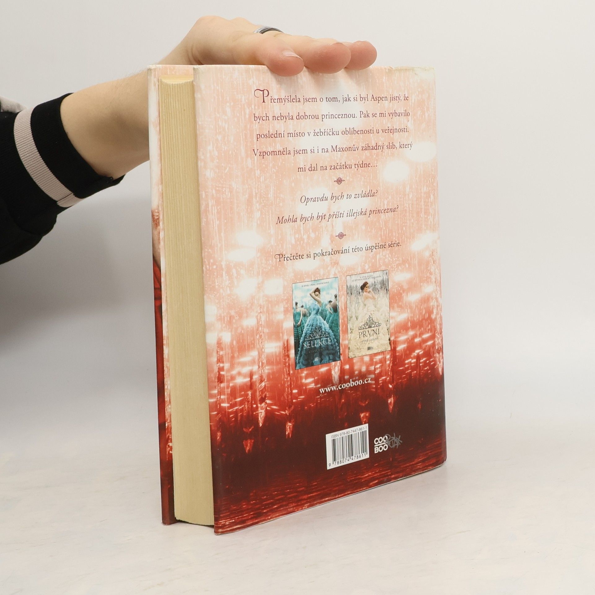 Třicet pět dívek přišlo do paláce soutěžit v Selekci. Všechny až na šest byly poslány domů. A jen jedna se provdá za prince Maxona a bude korunována princeznou Illey. America si pořád není jistá, kde leží její srdce. Když je s Maxonem, nechává se unášet jejich novou dechberoucí reakcí a nesní o ničem jiném, než být s ním. Ale kdykoliv vidí Aspena vykonávajícího práci strážce v paláci, je strhávána vzpomínkami na společný život, který si plánovali. Jak se skupinka zmenšila na Elitu, jsou ostatní dívky ještě odhodlanější získat Maxona - a Americe běží čas na rozhodnutí. Právě když si je America jistá, že se rozhodla, zničující ztráta ji donutí znovu o všem začít pochybovat. A zatímco se snaží představit si budoucnost, agresivní rebelové odhodlaní svrhnout monarchii nabývají na síle a jejich plány by mohly zničit její šanci na jakýkoliv šťastný konec.