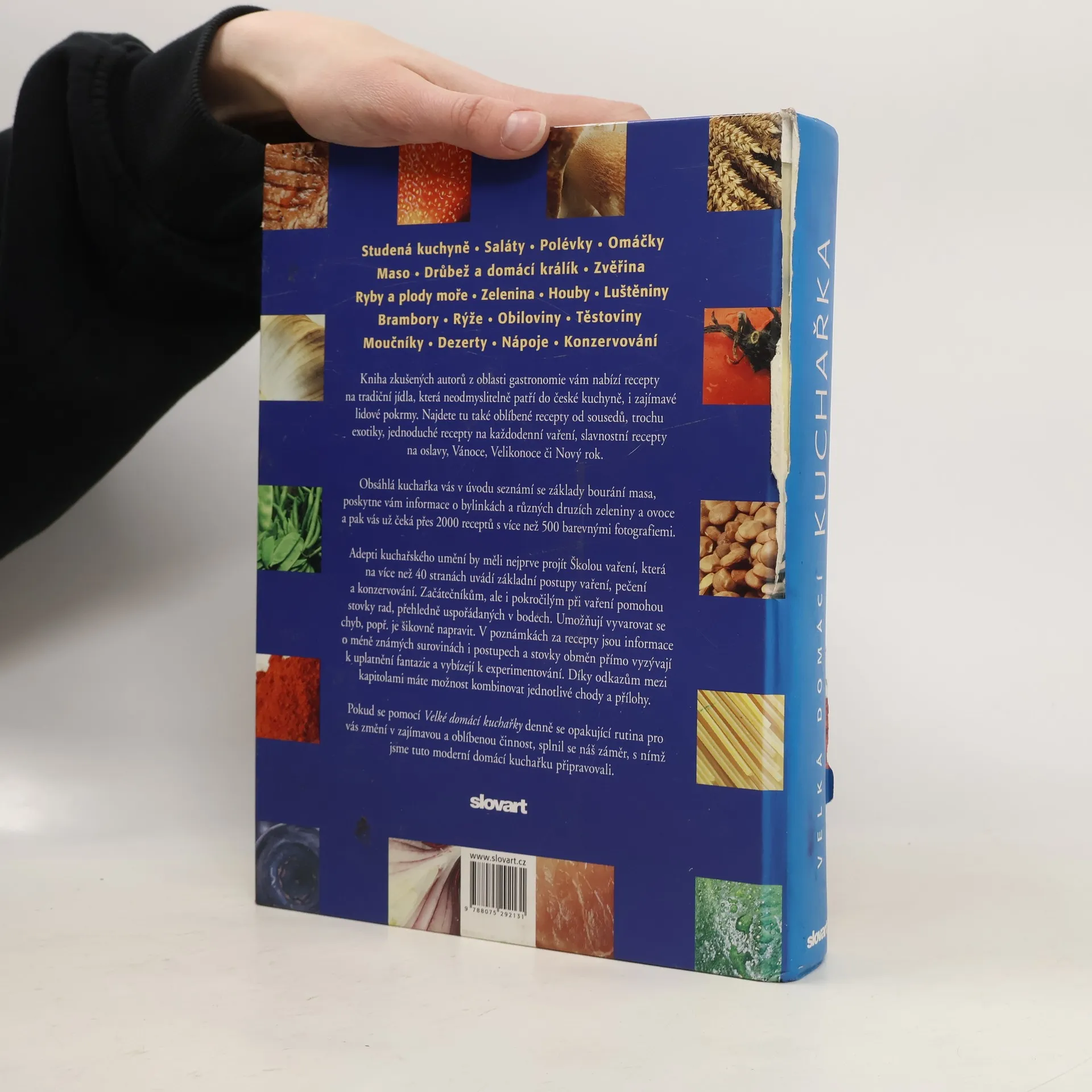 Kniha zkušených autorů z oblasti gastronomie vám nabízí recepty na tradiční jídla, která neodmyslitelně patří do české kuchyně, zajímavé lidové pokrmy, oblíbené recepty od sousedů, trochu exotiky, recepty na využití méně známých surovin, jednoduché recepty na každodenní vaření, slavnostní recepty na oslavy, Vánoce, Velikonoce či Nový rok. Najdete v ní vše od studené kuchyně, polévek přes maso, ryby, a plody moře, zeleninu, brambory, těstoviny až po moučníky a konzervování. Obsáhlá kuchařka vás v úvodu seznámí se základy bourání masa, poskytne vám informace o bylinkách a méně známých druzích zeleniny a ovoce a pak vás už čeká přes 2000 receptů s více než 500 barevnými fotografiemi. Adepti kuchařského umění by měli nejprve projít Školou vaření, která na více než 40 stranách nabízí základní postupy vaření, pečení a konzervování. Začátečníkům, ale i pokročilým při vaření pomohou stovky rad, přehledně uspořádaných v bodech. Umožňují vyvarovat se chyb, popř. je šikovně napravit. V poznámkách za recepty jsou informace o méně známých surovinách i postupech a stovky obměn přímo vyzývají k uplatnění fantazie a vybízejí k experimentování. Odkazy mezi jednotlivými kapitolami umožňují kombinovat jednotlivé chody a přílohy. Pokud se pomocí Velké domácí kuchařky denně se opakující rutina pro vás změní v zajímavou a oblíbenou činnost, splnil se záměr, s nímž autoři domácí kuchařku připravovali.