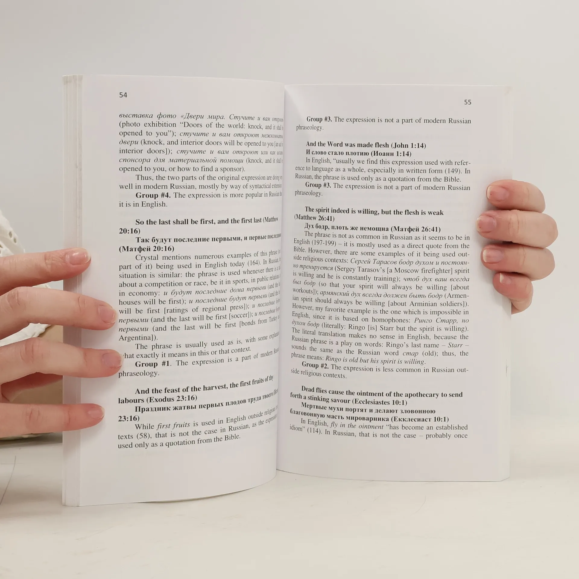Compares the verbatim and adapted usages "in two languages of more than 200 expressions that originated in the Bible."--Page 4 of printed paper wrapper. Pertains only to "common language" (non-religious) usages.--Pages x-xi.