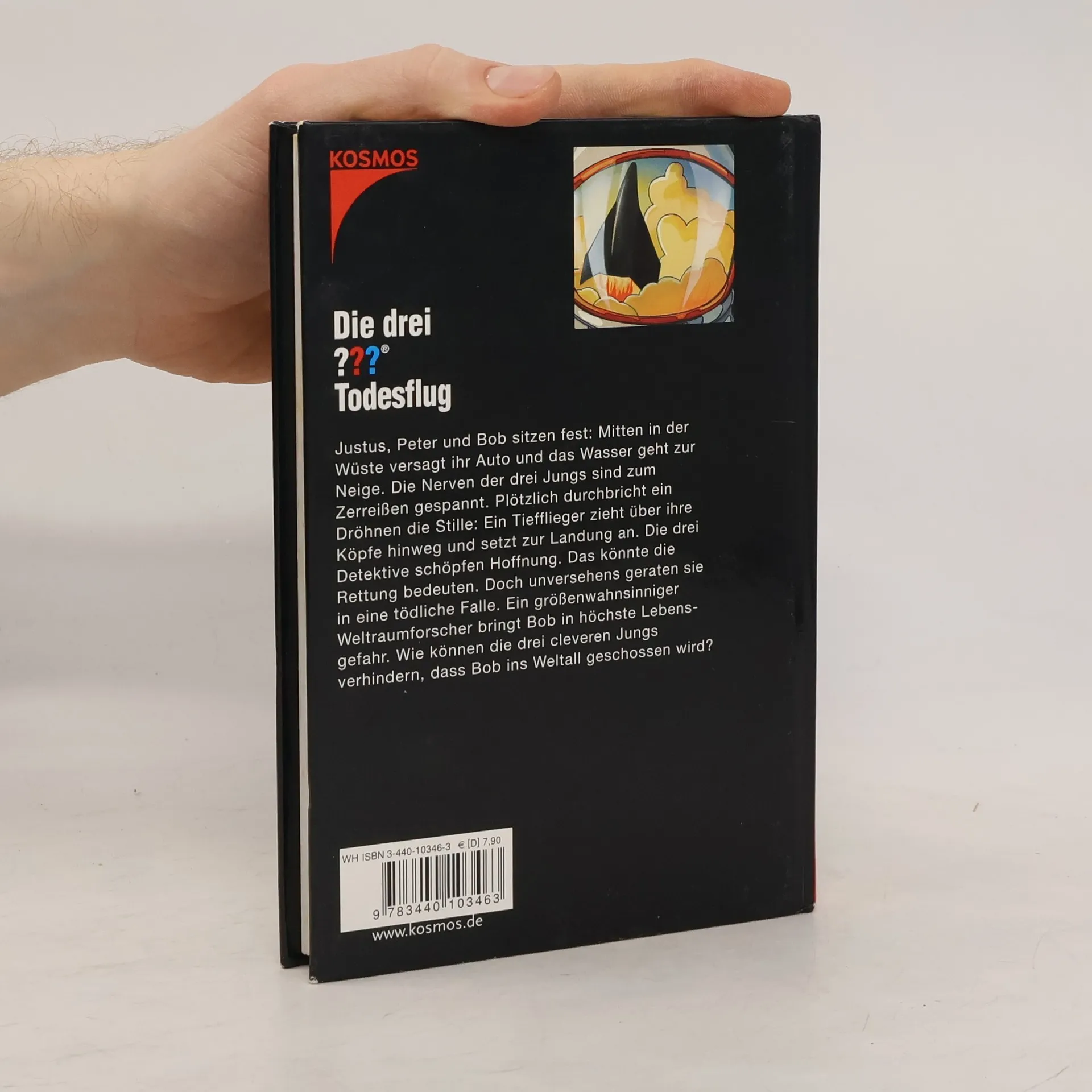 Justus, Peter und Bob sitzen fest: Mitten in der Wüste versagt ihr Auto und das Wasser geht zur Neige. Die Nerven der drei Jungs sind zum Zerreissen gespannt. Plötzlich durchbricht ein Dröhnen die Stille: Ein Tiefflieger zieht über ihre Köpfe hinweg und setzt zur Landung an. Die drei Detektive schöpfen Hoffnung. Das könnte die Rettung bedeuten. Doch unversehens geraten sie in eine tödliche Falle. Ein grössenwahnsinniger Weltraumforscher bringt Bob in höchste Lebensgefahr. Wie können die drei cleveren Jungs verhindern, dass Bob ins Weltall geschossen wird?
