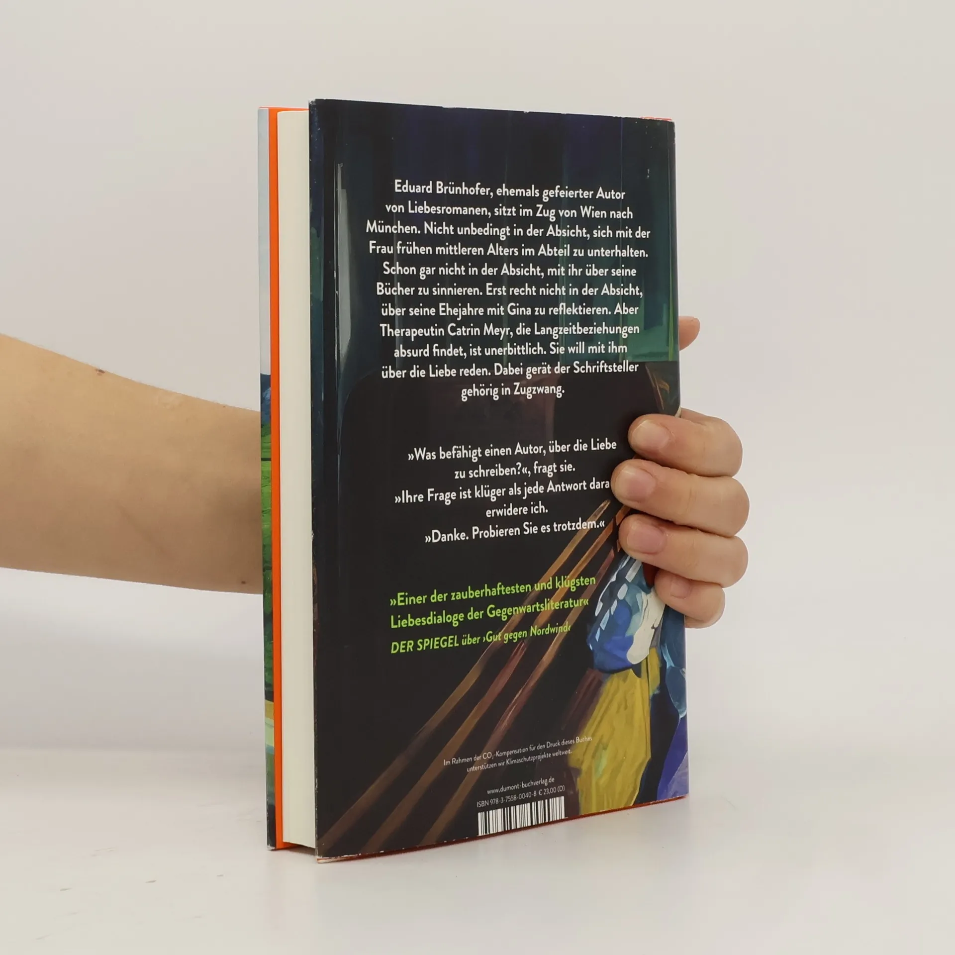 Eduard Brünhofer, ehemals gefeierter Autor von Liebesromanen, sitzt im Zug von Wien nach München. Nicht unbedingt in der Absicht, sich mit der Frau frühen mittleren Alters im Abteil zu unterhalten. Schon gar nicht in der Absicht, mit ihr über seine Bücher zu sinnieren. Erst recht nicht in der Absicht, über seine Ehejahre mit Gina zu reflektieren. Aber Therapeutin Catrin Meyr, die Langzeitbeziehungen absurd findet, ist unerbittlich. Sie will mit ihm über die Liebe reden. Dabei gerät der Schriftsteller gehörig in Zugzwang. »Was befähigt einen Autor, über die Liebe zu schreiben?«, fragt sie. »Ihre Frage ist klüger als jede Antwort darauf«, erwidere ich. »Danke. Probieren Sie es trotzdem.« »[W]ir haben so viel Spaß wie 2006 bei Daniel Glattauers Riesenerfolg ›Gut gegen Nordwind‹.« Elke Heidenreich, BUNTE »Einer der zauberhaftesten und klügsten Liebesdialoge der Gegenwartsliteratur« DER SPIEGEL über ›Gut gegen Nordwind‹