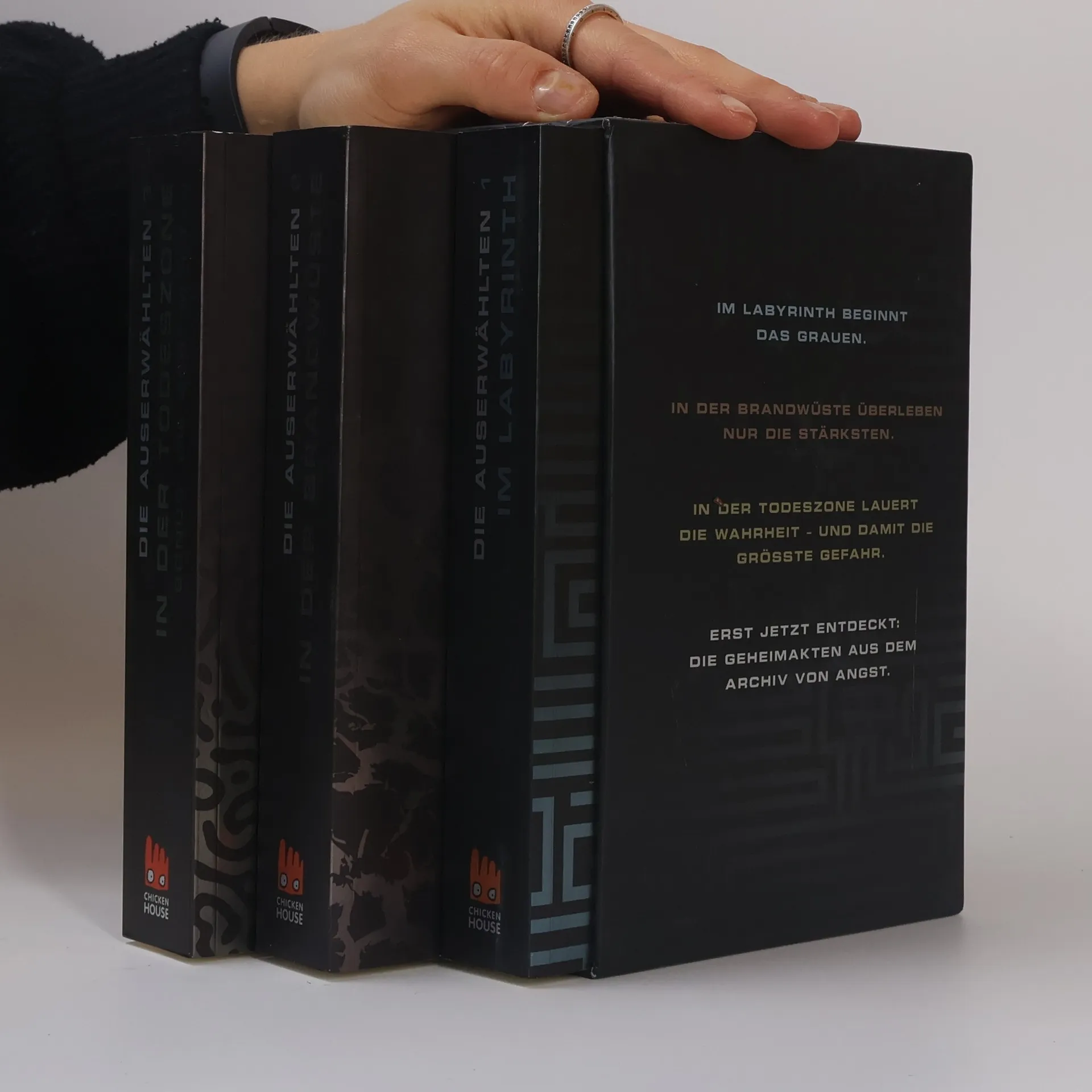 In dieser Buchreihe von James Dashner werden die Abenteuer von Thomas, einem jungen Mann, der ohne Erinnerungen in einem geheimnisvollen Labyrinth aufwacht, erzählt. Zusammen mit einer Gruppe von Jugendlichen, die ebenfalls in das Labyrinth gebracht wurden, muss er herausfinden, wie sie entkommen können. Die ersten drei Bände folgen ihrem Kampf ums Überleben, während sie sich den Herausforderungen des Labyrinths und den Gefahren der Außenwelt stellen. Zentrale Themen sind Freundschaft, Mut und die Suche nach Identität in einer dystopischen Umgebung. Thomas und seine Mitstreiter, darunter Minho, der erfahrene Läufer, und Teresa, die einzige weibliche Ankömmling, müssen sich nicht nur gegen die monströsen Kreaturen, die das Labyrinth bewachen, behaupten, sondern auch gegen die geheimnisvollen Kräfte, die sie in diese Situation gebracht haben. Die Erzählung thematisiert auch die moralischen Dilemmata, die mit Überleben und der Verantwortung gegenüber anderen verbunden sind. Die Leser können komplexe Charakterentwicklungen und spannende Handlungsstränge erwarten, die die Fragen von Vertrauen und Verrat in einer von Angst geprägten Welt beleuchten.