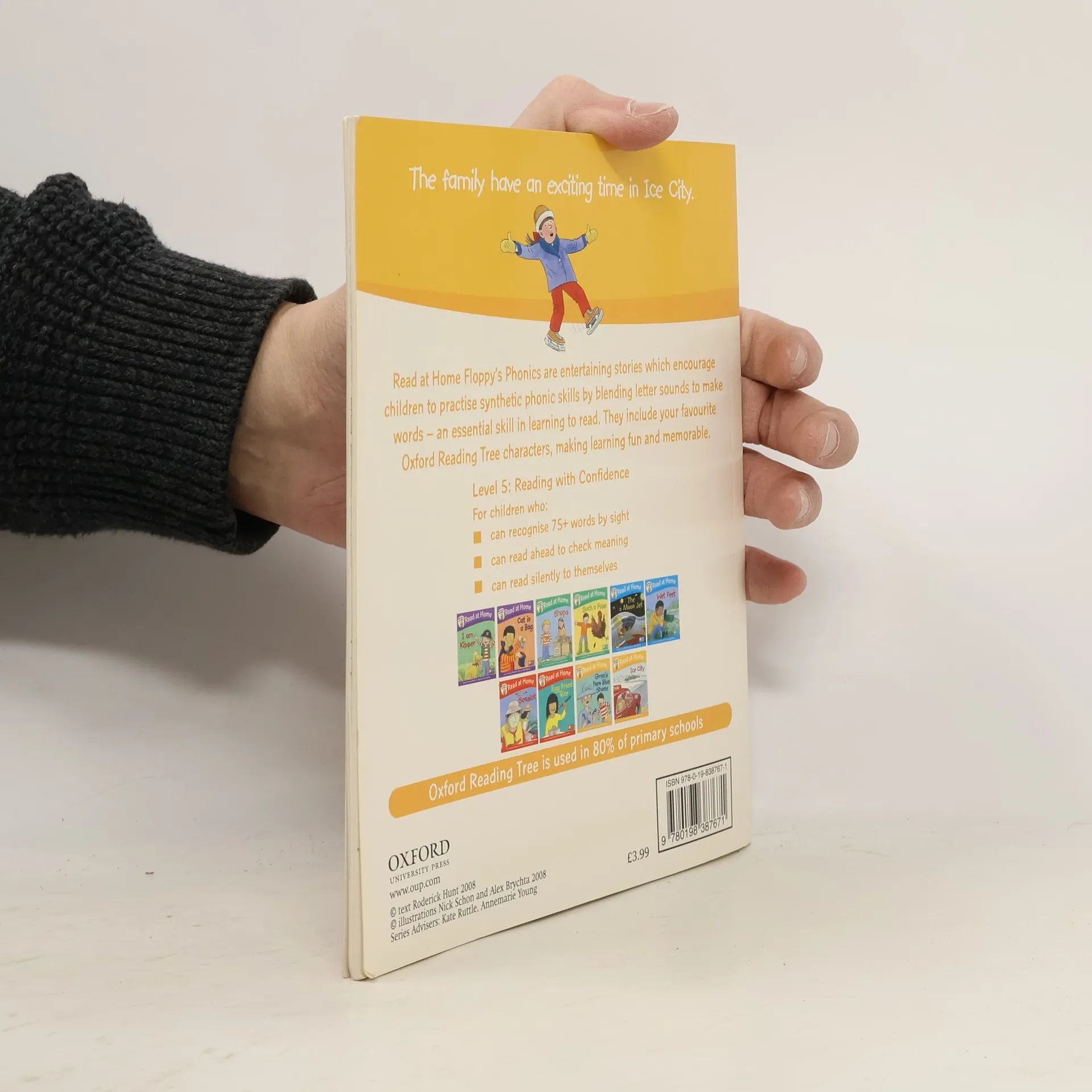 Brand new from Oxford Reading Tree, this is the complete, fun and easy-to-use answer to using phonics at home. Featuring the much-loved characters Biff, Chip, Kipper and Floppy, the simple stories encourage word recognition skills and language comprehension for early reading success. Providing the perfect opportunity for parents to reinforce school progress, these delightful stories, set within familiar settings, will really help children to build confidence. I am Kipper, Cat in a Bag, Shops, Such a Fuss, The Moon Jet, wet Feet, Seasick, Egg Fried Rice.