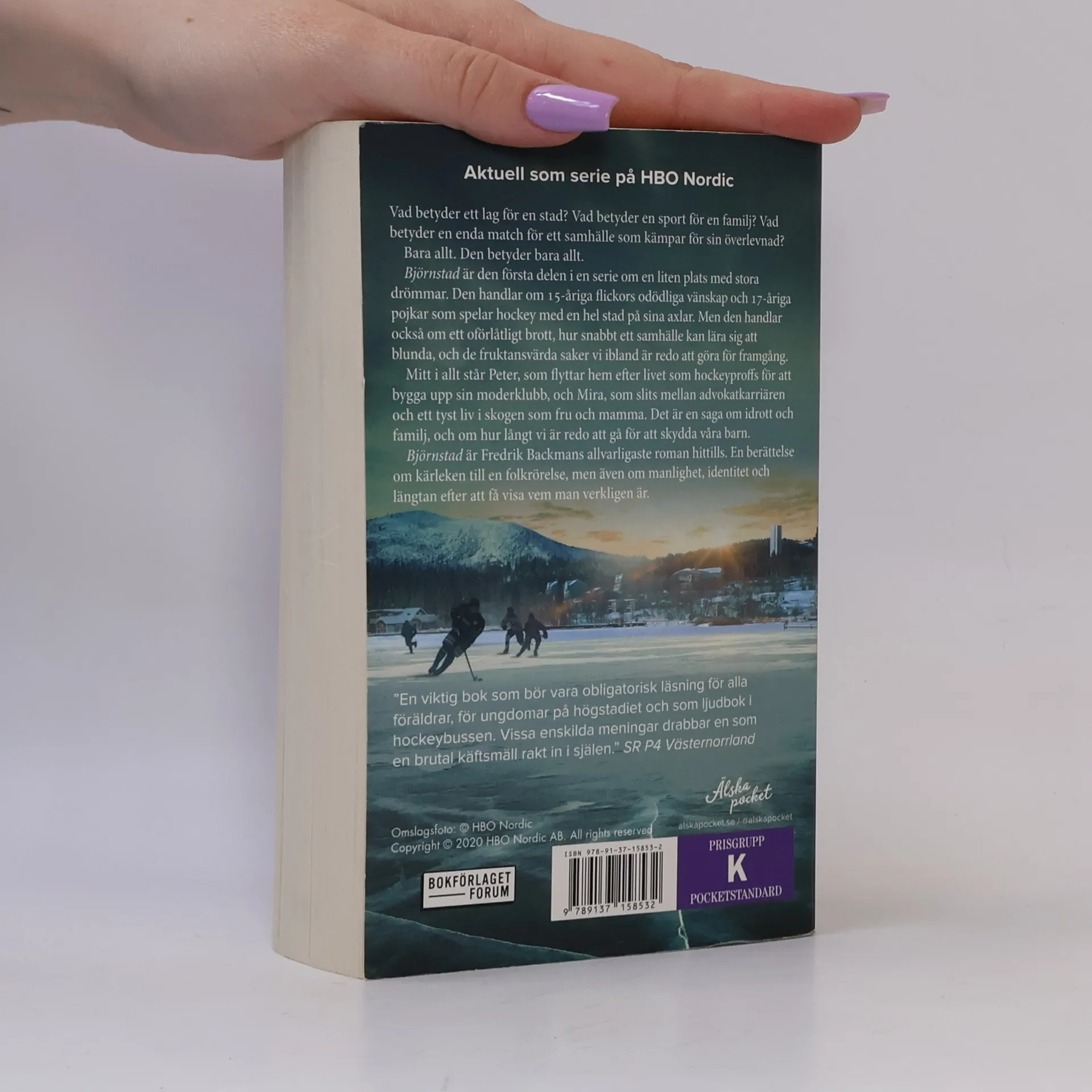 "Utan tvekan hans mästerverk!" New York Journal of BooksAktuell som HBO-serie hösten 2020Vad betyder ett lag för en stad? Vad betyder en sport för en familj?Allt. Den betyder bara allt.Invånarna flyttar från Björnstad och jobben blir allt färre, men ändå lever drömmen om forna glansdagar - och det är hockeyn som är räddningen. Allt hopp sätts till det lovande juniorlaget och den kommande semifinalen förväntas sätta staden på kartan igen.Mitt i detta finns Peter, som flyttar hem efter livet som hockeyproffs för att bygga upp sin gamla klubb, och Mira, som slits mellan advokatkarriären och ett tyst liv i skogen som fru och mamma. Där finns också 15-åriga flickor och deras odödliga vänskap och 17-åriga pojkar som spelar hockey med en hel stad på sina axlar. Men när ett allvarligt brott sker visar det sig hur villigt ett samhälle förfört av framgång är att se mellan fingrarna och hur långt vi är redo att gå för att skydda våra barn."Björnstad" är Fredrik Backmans allvarligaste roman hittills. Det är en berättelse om kärleken till en folkrörelse, men även om manlighet, identitet och längtan efter att få visa vem man verkligen är.