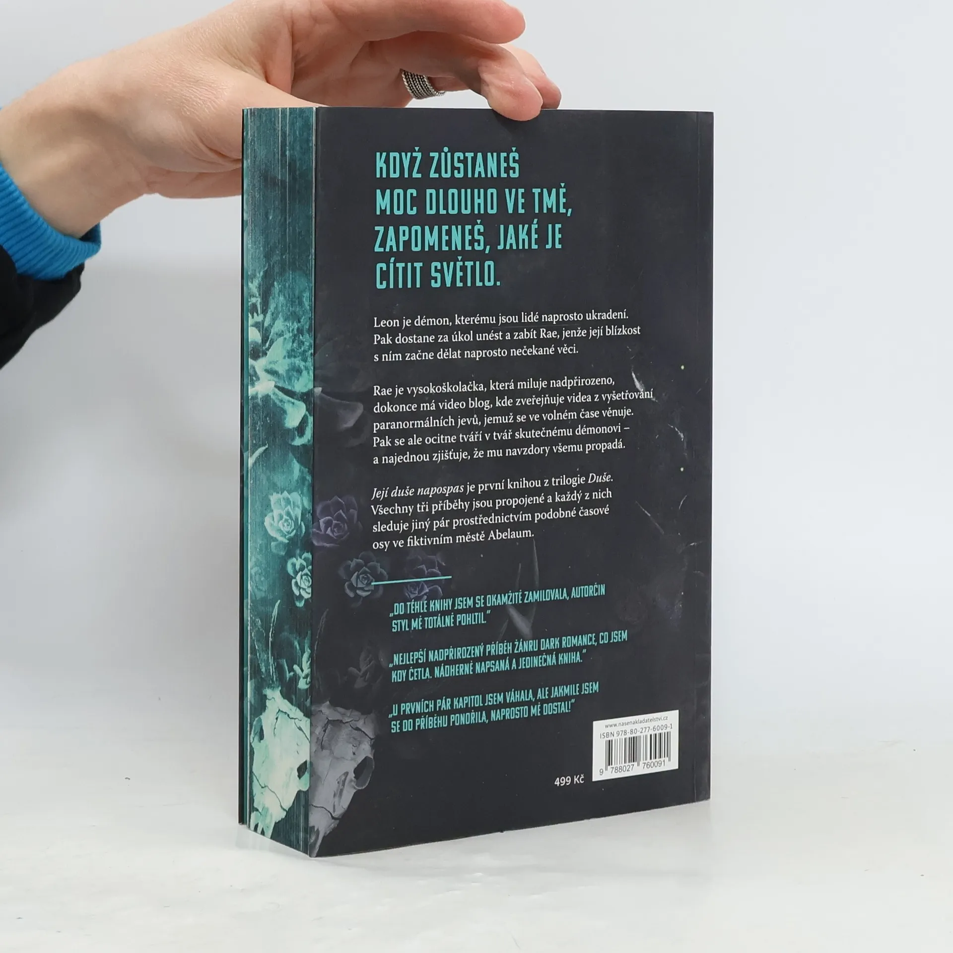 Leon Svou pověst mezi čaroději jsem si nevysloužil jen tak pro nic za nic: stačí jeden špatný pohyb a byl bych mrtvý. Začali mi říkat Zabiják a zabíjení je to, v čem jsem nejlepší. Jenže pak jsem poznal ji. Měl jsem ji unést, měl jsem ji zabít – a neudělal jsem to. Kult, který mě kdysiovládal, ji chce, ale já jim svou novou hračku nedám. Rae Vždycky jsem věřila v nadpřirozeno. Duchové jsou moje vášeň, ale v životě mě nenapadlo, že jednou vyvolám démona. Po lesích se potulují příšery a něco prastarého – něco ďábelského – se probouzí a volá mé jméno. Nevím, komu můžu věřit ani jak hluboko tato temnota sahá. Jistě vím jen jediné – pronásleduje mě démon a on nechce jen moje tělo – chce i mou duši. A bez něj se mi nepodaří přežít. Její duše napospas je první knihou z trilogie Duše. Všechny tři příběhy jsou propojené a každý z nich sleduje jiný pár prostřednictvím podobné časové osy ve fiktivním městě Abelaum.