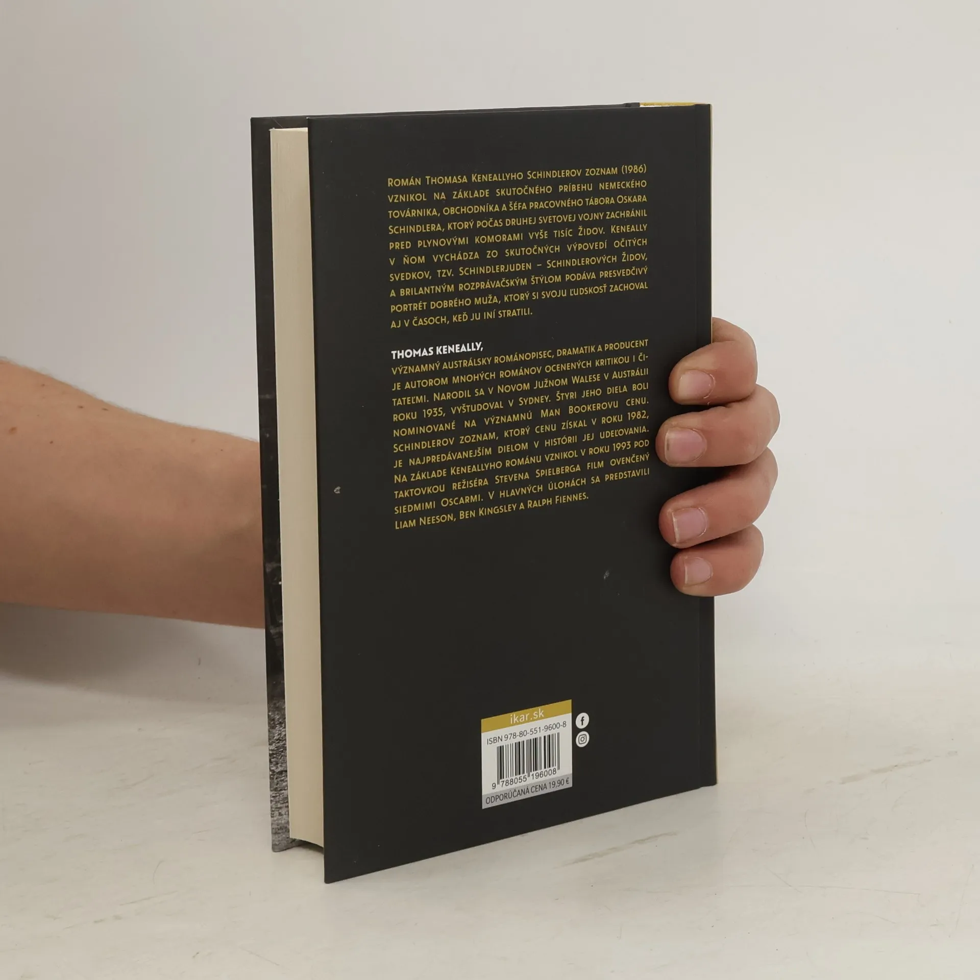 Román Thomasa Keneallyho Schindlerov zoznam (1986) vznikol na základe skutočného príbehu nemeckého továrnika, obchodníka a šéfa pracovného tábora Oskara Schindlera, ktorý počas druhej svetovej vojny zachránil pred plynovými komorami vyše tisíc Židov. Keneally v ňom vychádza zo skutočných výpovedí očitých svedkov, tzv. Schindlerjuden – Schindlerových Židov, a brilantným rozprávačským štýlom podáva presvedčivý portrét dobrého muža, ktorý si svoju ľudskosť zachoval aj v časoch, keď ju iní stratili.