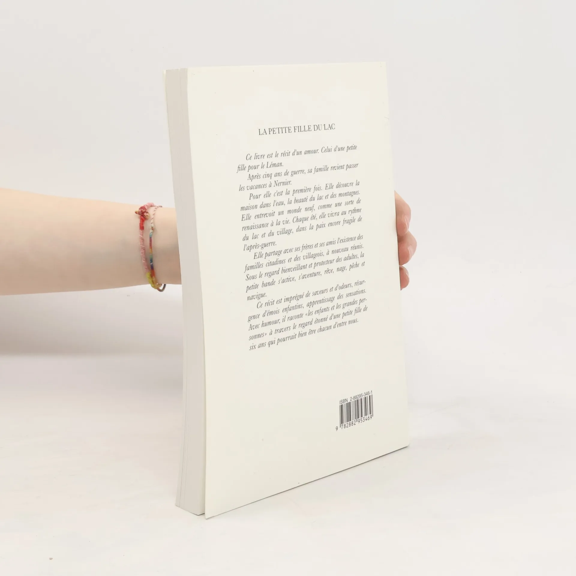 Ce livre est le récit d`un amour. Celui d`une petite fille pour le Léman. Après cinq ans de guerre, sa famille revient passer les vacances à Nernier. Pour elle, c`est la première fois. Elle découvre la maison dans l`eau, la beauté du lac et des montagnes. Elle entrevoit un monde neuf, comme une sorte de renaissance à la vie. Chaque été, elle vivra au rythme du lac et du village, dans la paix encore fragile de l`après-guerre. Elle partage avec ses frères et ses amis l`existence des familles citadines et des villageois, à nouveau réunis. Sous le regard bienveillant et protecteur des adultes, la petite bande s`active, s`aventure, rêve, nage, pêche et navigue. Ce récit est imprégné de saveurs et d`odeurs, résurgence d`émois enfantins, apprentissage des sensations. Avec humour, il raconte «les enfants et les grandes personnes» à travers le regard étonné d`une petite fille de six ans qui pourrait bien être chacun d`entre nous.