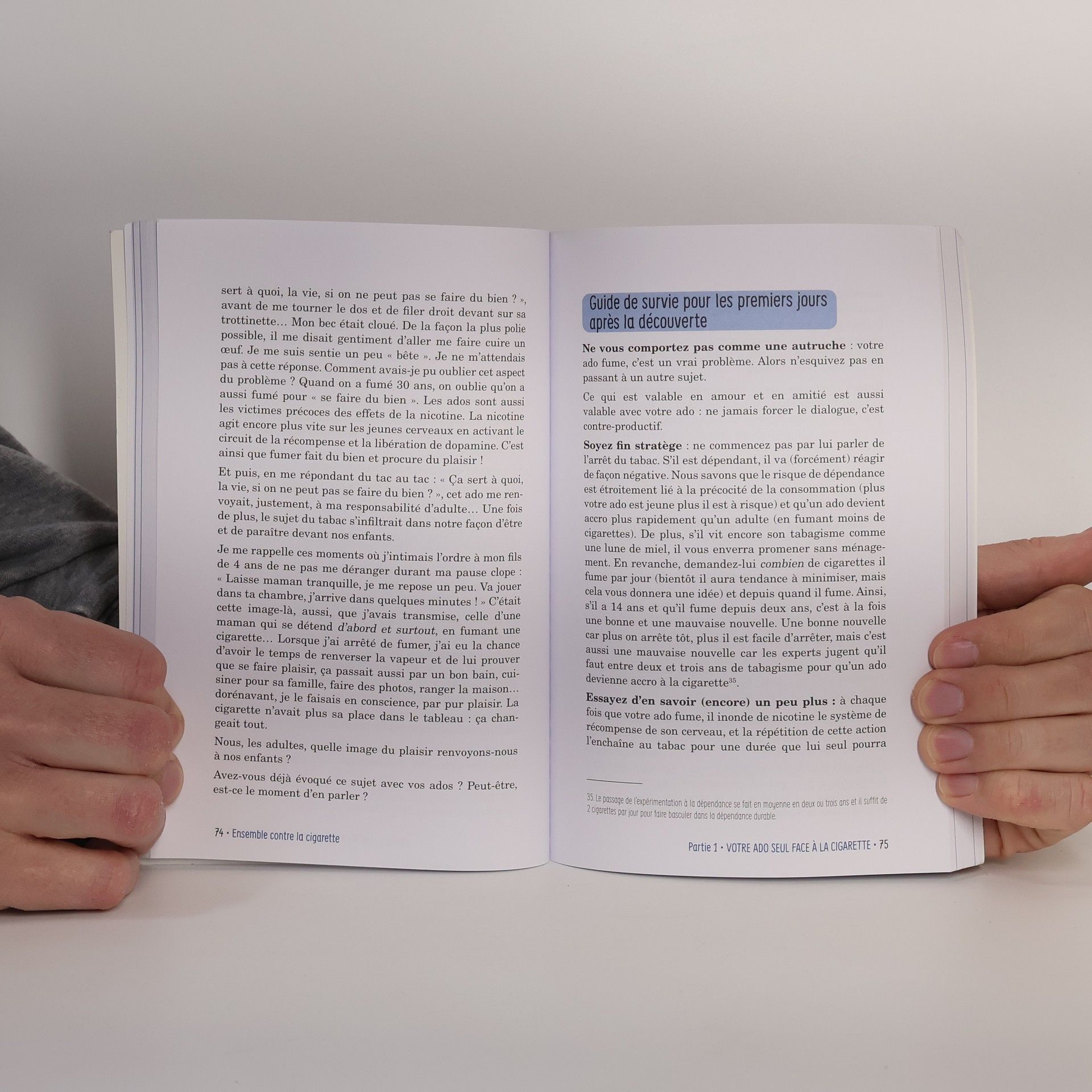 Ensemble, protégeons nos adolescents pour qu'une génération sans tabac voie le jour. En France, chaque année, 200 000 jeunes commencent à fumer dès l'âge de 13-14 ans.Parmi eux, deux sur trois seront des fumeurs réguliers une bonne partie de leur vie, si ce n'est toute leur vie. Loin d'être une fatalité, ces chiffres nous permettent de prendre conscience de l'ampleur du danger que représente la cigarette et d'agir pour que fumer ne soit plus considéré comme une norme sociale.Accompagner les jeunes vers une vie sans tabac, ce n'est pas déclencher les hostilités, mais leur transmettre l'amour de la liberté, le sens du discernement et la capacité à résister à toutes formes d'asservissements.Que votre enfant soit fumeur ou non, Katia Raffarin vous propose des conseils, des discours adaptés à chaque situation, des témoignages de jeunes et de parents, pour que la lutte contre le tabac s'inscrive naturellement dans votre quotidien.