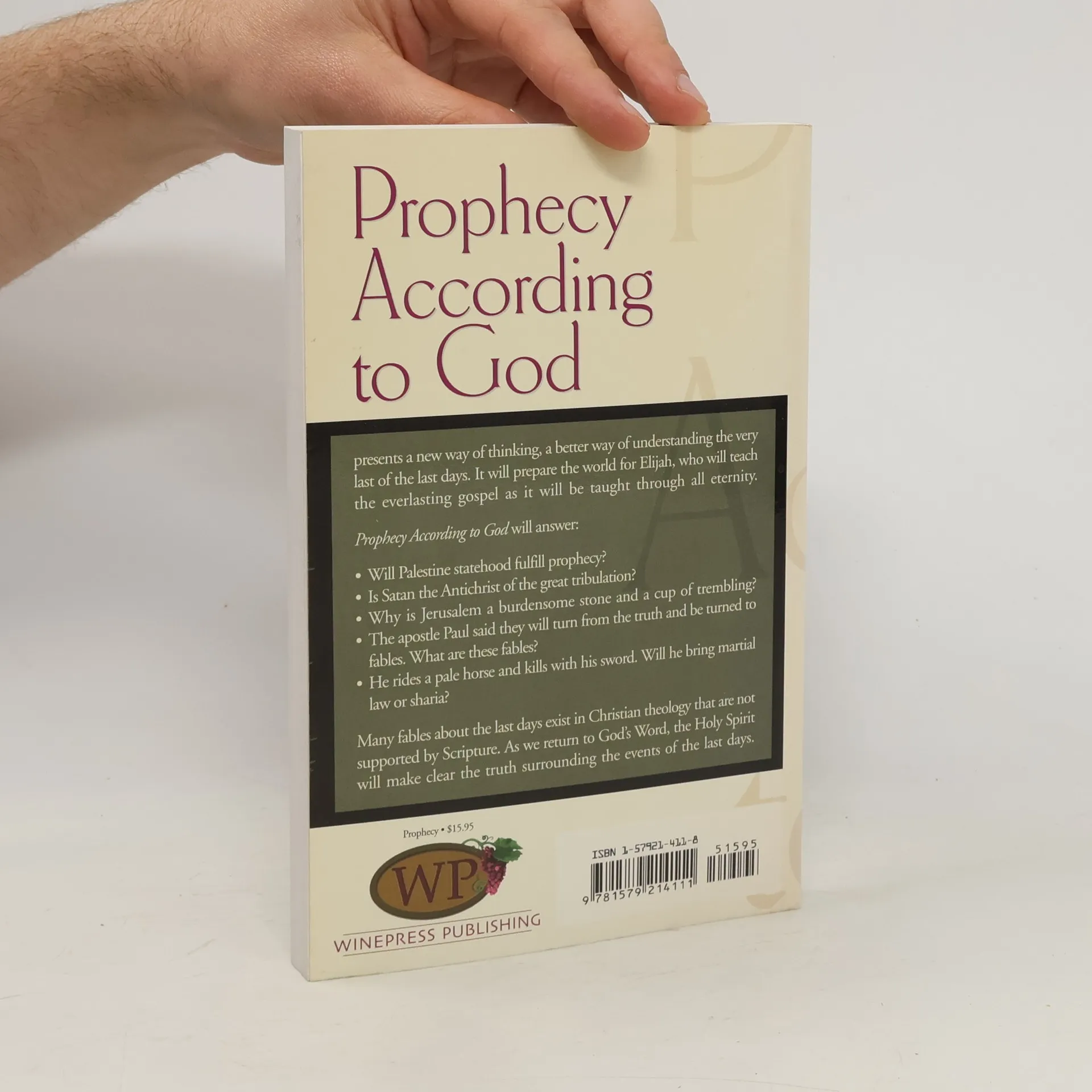"Prophecy According to God" presents a new way of thinking, a better way of understanding the very last of the last days. It will prepare the world for Elijah, who will teach the everlasting gospel as it will be taught through all eternity. "Prophecy According to God" will · Will Palestine statehood fulfill prophecy?· Is Satan the Anti-Christ of the great tribulation?· Why is Jerusalem a burdensome stone and a cup of trembling?· The apostle Paul said they will turn from the truth and be turned to fables. What are these fables?· He rides a pale horse and kills with his sword. Will he bring martial law or sharia? Many fables about the last days exist in Christian theology that are not supported by Scripture. As we return to God’s Word, the Holy Spirit will make clear the truth surrounding the events of the last days.