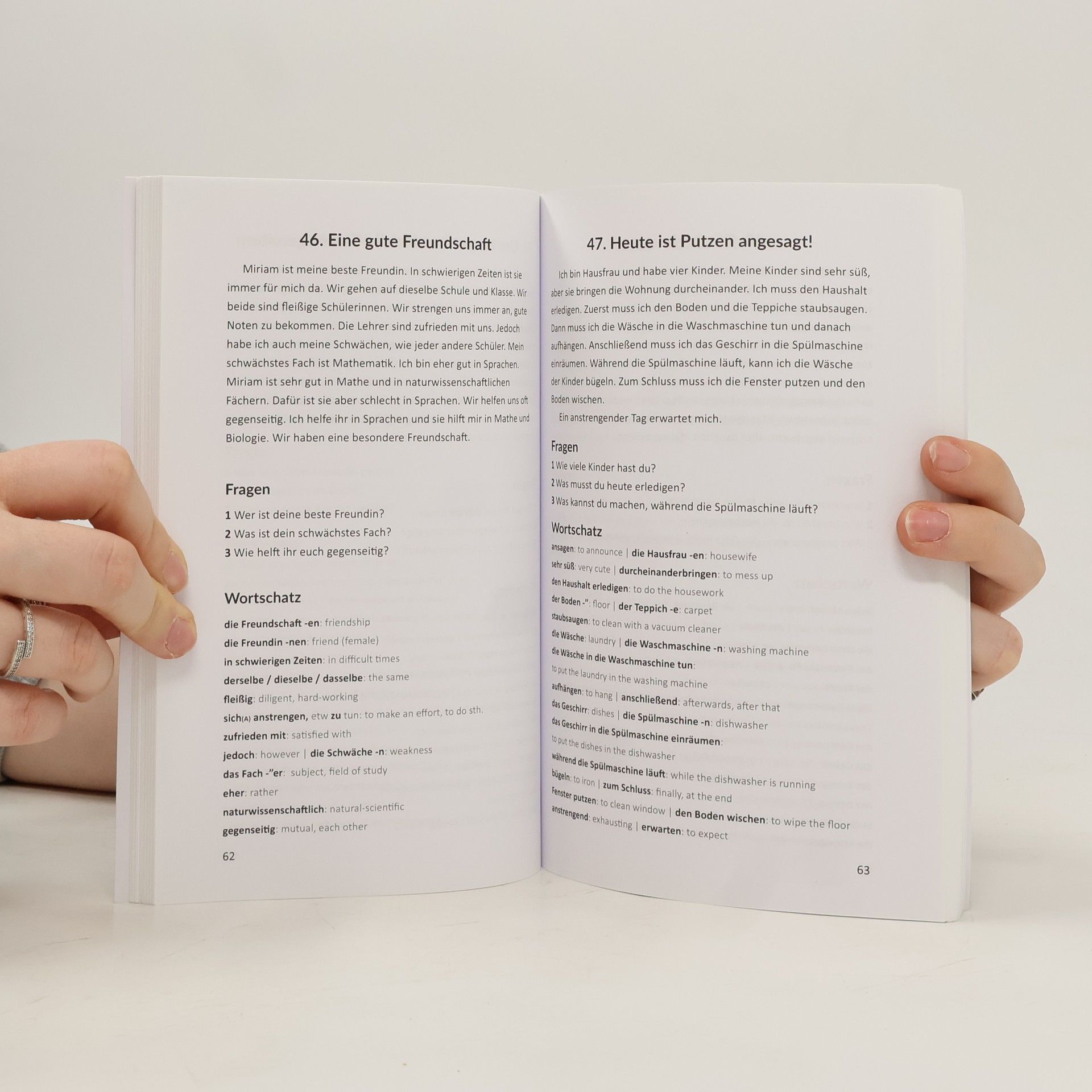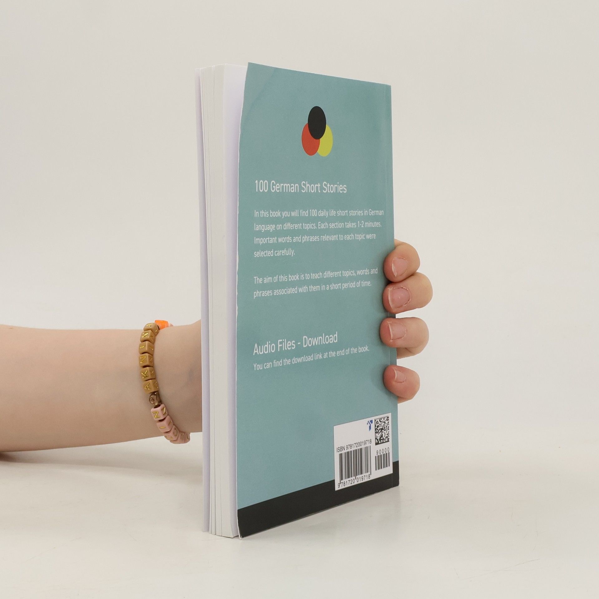100 German Short Stories For BeginnersIn this book you will find 100 daily life short stories in German language on different topics. Each section takes 1-2 minutes. Important words and phrases relevant to each topic were selected carefully.The aim of this book is to teach different topics, words and phrases associated with them in a short period of time.Each section has 3 parts:A short daily life short story, questions and vocabularyIn the book you can find the download link for audio (as mp3 file).