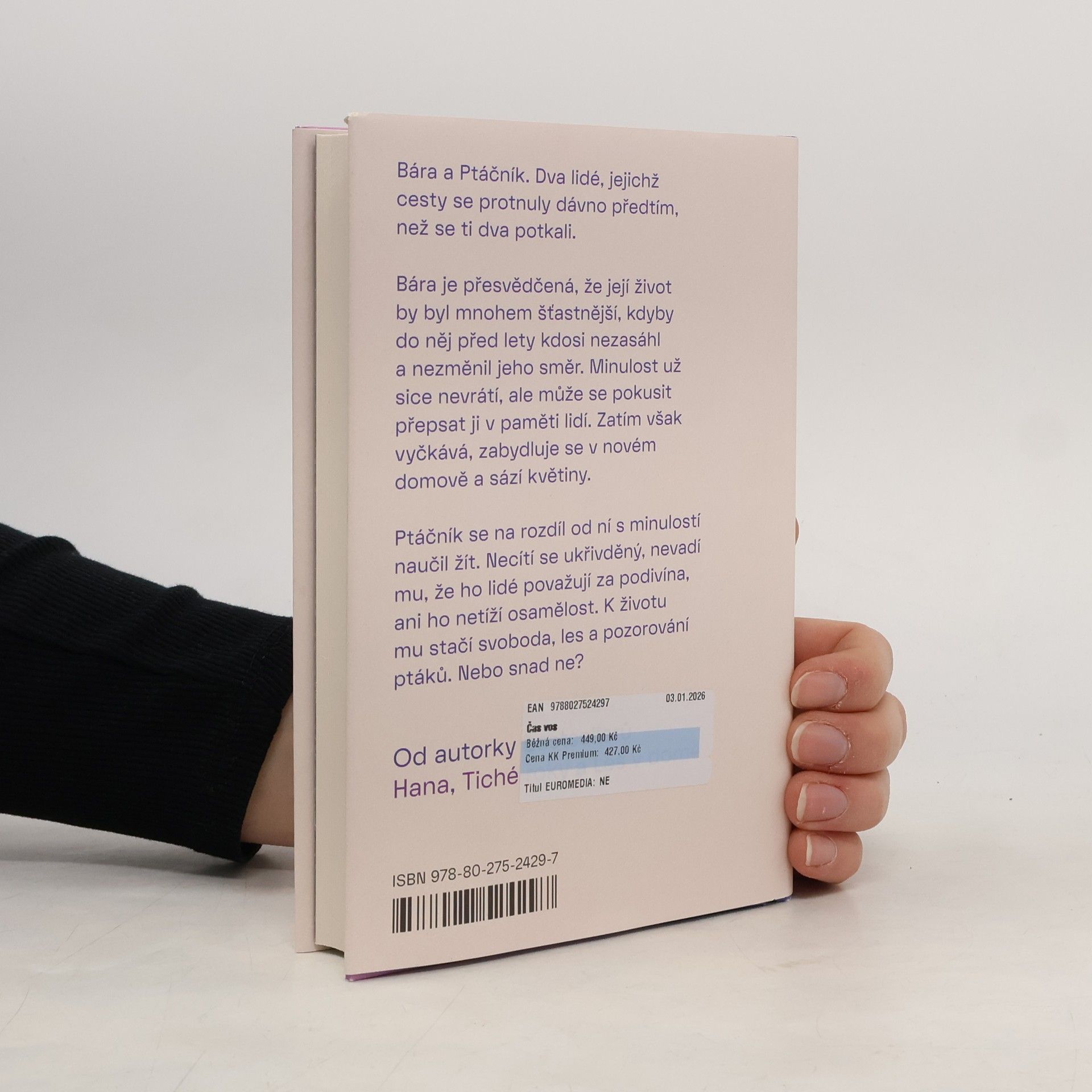 Čas vos je příběhem o moci minulosti a o síle květin. Bára a Ptáčník. Dva lidé, jejichž cesty se protnuly dávno předtím, než se ti dva potkali. Bára je přesvědčená, že její život by byl mnohem šťastnější, kdyby do něj před lety kdosi nezasáhl a nezměnil jeho směr. Minulost už sice nevrátí, ale může se pokusit přepsat ji v paměti lidí. A také přemýšlí o pomstě. Zatím však teprve vyčkává, zabydluje se v novém domově a sází květiny. Ptáčník se na rozdíl od ní s minulostí naučil žít. Necítí se ukřivděný, nevadí mu, že ho lidé považují za podivína, ani ho netíží osamělost. K životu mu stačí svoboda, les a pozorování ptáků. Nebo snad ne? Nový román Aleny Mornštajnové má vše, co její knihy činí tolik oblíbenými: hluboký příběh a uvěřitelné hrdiny, kteří si navzdory osudu krok za krokem vyšlapávají pěšinku ke šťastnějšímu životu.
