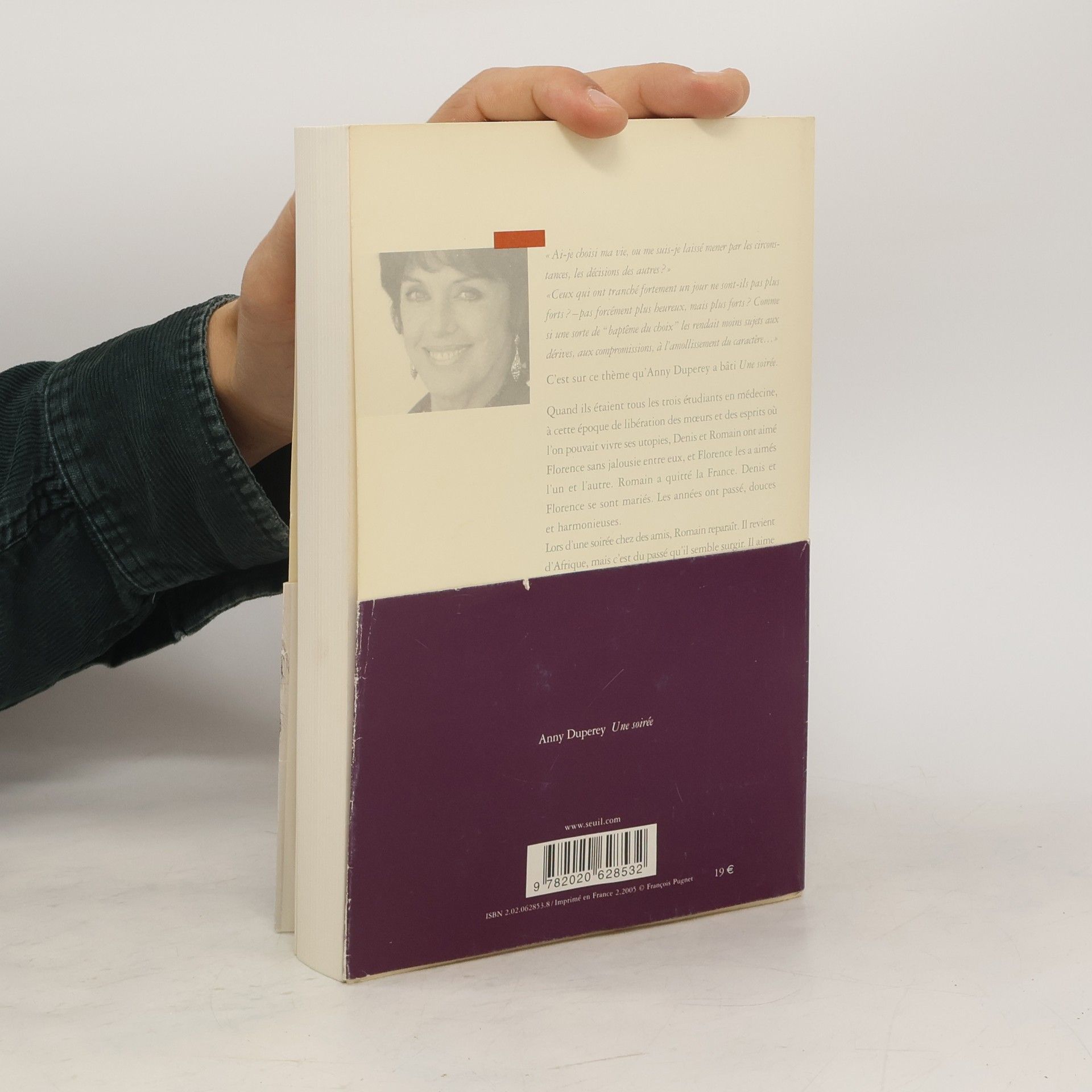 C'est sur ce thème qu'Anny Duperey a bâti Une soirée.Quand ils étaient tous les trois étudiants en médecine, à cette époque de libération des moeurs et des esprits où l'on pouvait vivre ses utopies, Denis et Romain ont aimé Florence sans jalousie entre eux, et Florence les a aimés l'un et l'autre. Romain a quitté la France. Denis et Florence se sont mariés. Les années ont passé, douces et harmonieuses.Lors d'une soirée chez des amis, Romain reparaît. Il revient d'Afrique, mais c'est du passé qu'il semble surgir. Il aime toujours Florence. Que va-t-elle faire ?Rien de ce qu'on croit. Car elle prend conscience, en une soirée, que jusqu'alors elle n'a rien décidé dans son existence. Elle a consenti, elle n'a pas choisi. Cela lui semble tout à coup insupportable.Anny Duperey raconte avec autant d'acuité le parcours de Florence que ce qu'il advient de Denis et de Romain. Chaque lecteur, qu'il soit femme ou homme, trouvera des échos de lui-même dans ce roman émouvant, inattendu comme est la vie, souvent drôle, toujours généreux.
