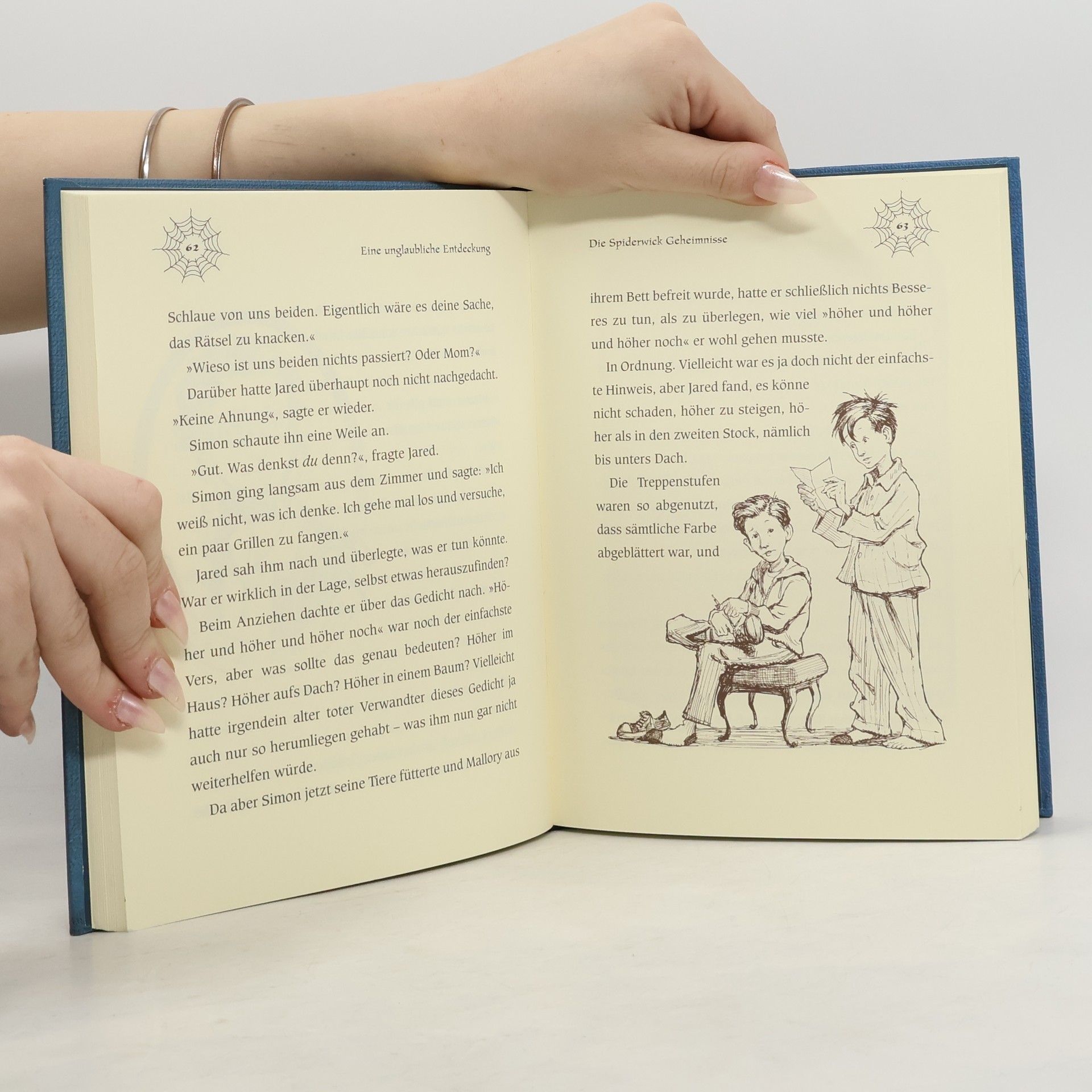 Ein altes, verfallenes Haus einer ungeliebten Tante –- das ist das neue Zuhause der Zwillinge Jared und Simon, ihrer Schwester Mallory und ihrer Mutter. Jared ist überhaupt nicht scharf darauf, dort zu wohnen. Aber Jareds Eltern sind geschieden, und sie können nirgendwo anders unterkommen. Doch das Haus von Tante Lucinda birgt viele Geheimnisse, wie die Kinder schnell feststellen: Da gibt es merkwürdige Geräusche in den Wänden, ein Nest mit einer Kakerlaken-Girlande –- und einen Aufzug, der in ein verborgenes Zimmer führt. In diesem Zimmer findet Jared Hinweise auf eine andere Welt, in der sich Elfen, Kobolde und Gnome tummeln. Und bald schon bekommen die Kinder die Anwesenheit dieser Wesen hautnah zu spüren: Mallorys Haare werden an ihr Bett geknotet, und Jared trifft einen leibhaftigen Irrwicht. Außerdem findet er “Arthur Spiderwicks Handbuch für die fantastische Welt um dich herum”, und damit geht das Abenteuer erst so richtig los. In diesem ersten Teil der Geschichte um Jared, seine Geschwister und die fantastische Welt der Elfen und Kobolde werden die Grundlagen gelegt für die Abenteuer, die die drei Kinder in den Folgebänden erleben werden. In vielerlei Hinsicht wird hier eine klassische Fantasygeschichte erzählt, doch manches daran ist ungewöhnlich: Die Kinder leben keineswegs in einer heilen Märchenwelt, sondern leiden unter der Scheidung ihrer Eltern und haben ihre Fehler und Macken.